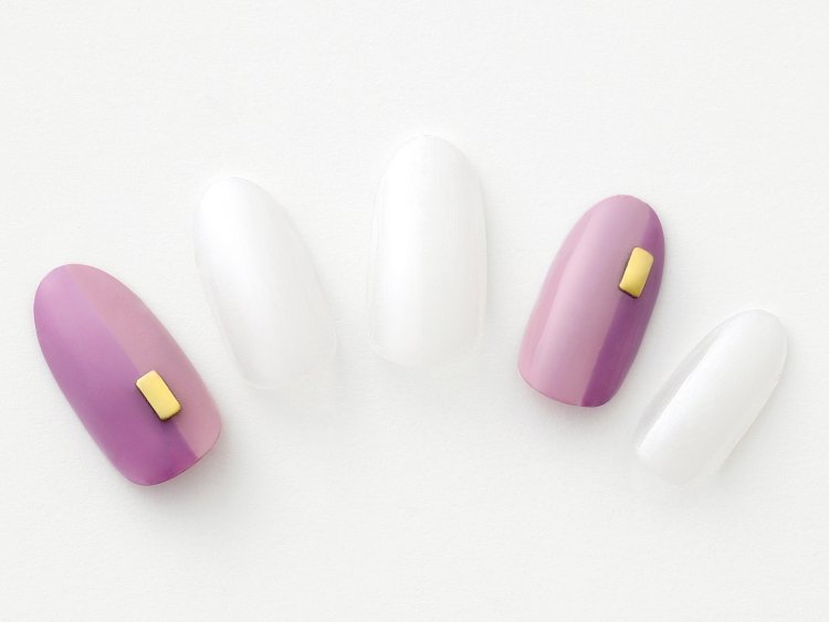 - 薬指は、パープル、水色、ホワイト、ゴールドでストライプに。