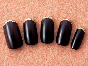 クールなインパクトを放つダークパープルの先端に、ゴールドのラメを輝かせたシックでリッチなデザイン。