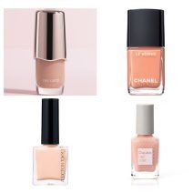 1.すべての指にシアーなホワイトピンクのポリッシュを2度塗りする。