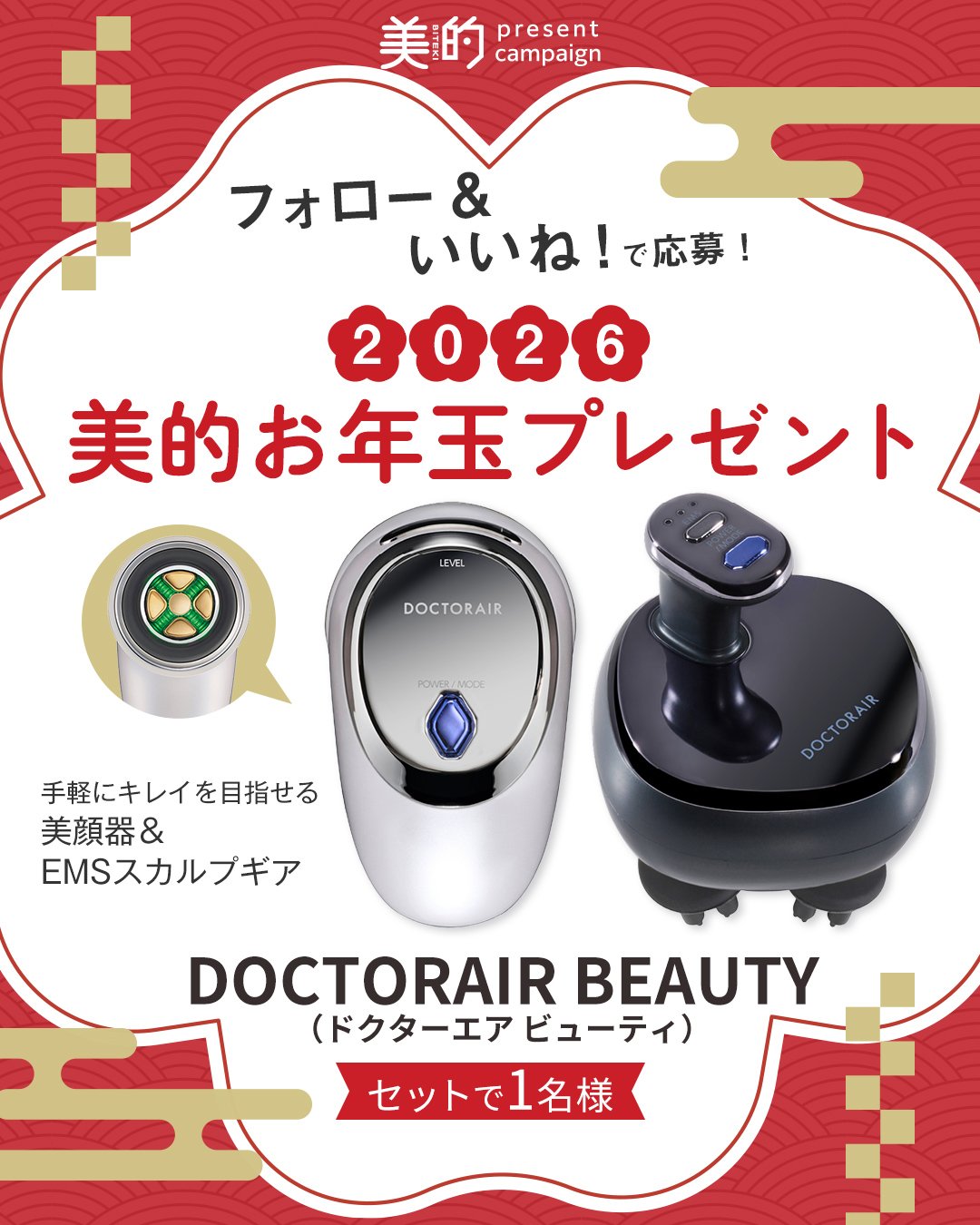 大人気トータルボディケアブランド「ドクターエア」のビューティアイテムが揃う「ドクターエア ビューティ」からは、話題の美顔器&EMSスカルプギアをプレゼント!