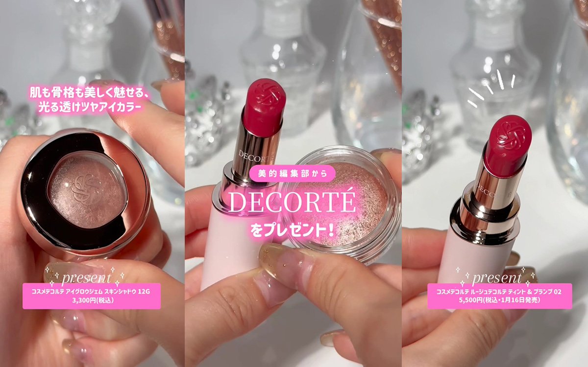 コスメデコルテから1月16日発売の新作のリップと、『美的』読者ベスコス2025のシングルアイシャドウ編で1位に輝いたアイシャドウをセットでプレゼント!今年話題になること間違いなしの2品は必見です!