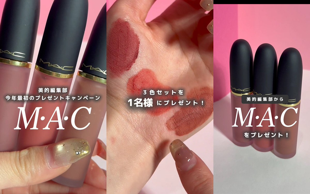 M・A・Cから1月9日発売の新作のリップ&チークのおすすめカラー3色をセットでプレゼント。話題のアイテムを手に入れることができる絶好のチャンスです!