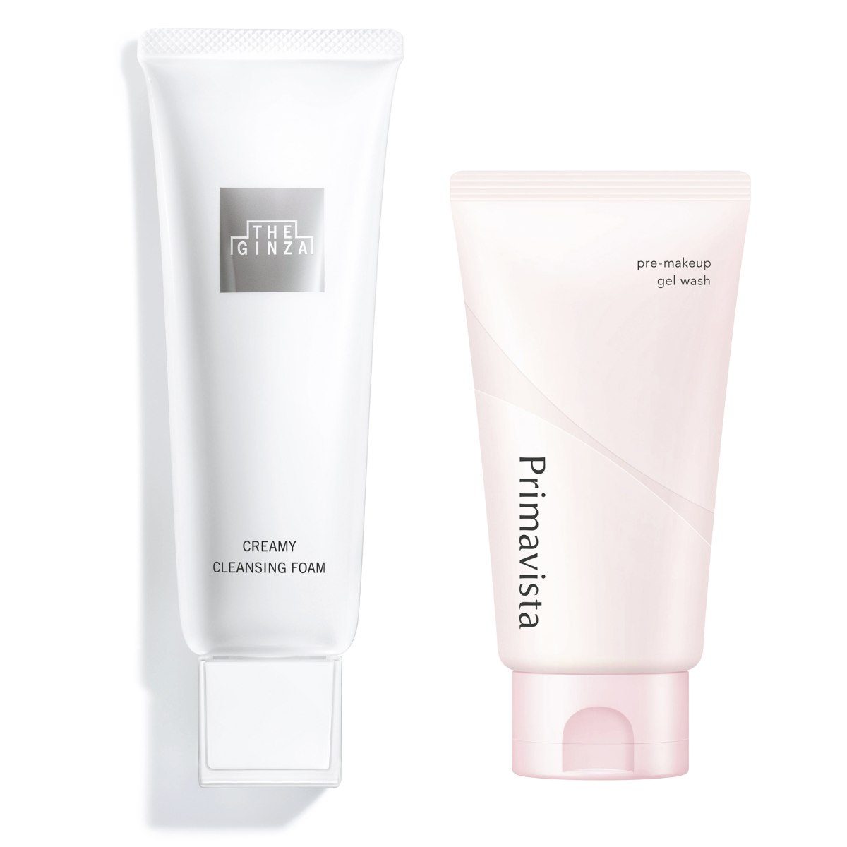 右から/花王 プリマヴィスタ プレメイクアップ ジェルウォッシュ 110g ¥2,420(編集部調べ)、ザ・ギンザ クリーミークレンジングフォーム 130g ¥8,800