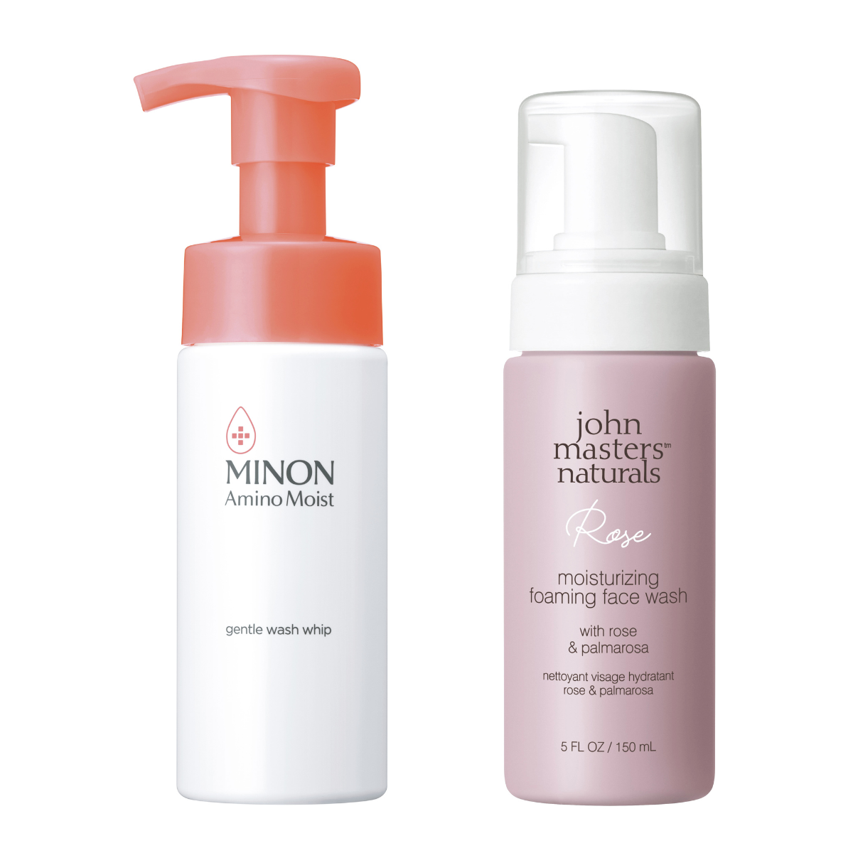 右から/ジョンマスターオーガニック R&Pモイスチャライジングフォーミングフェイスウォッシュ(ローズ&パルマローザ) 150㎖ ¥4,180(限定品)、第一三共ヘルスケア ミノン アミノモイスト ジェントルウォッシュ ホイップ 150㎖ ¥1,650(編集部調べ)