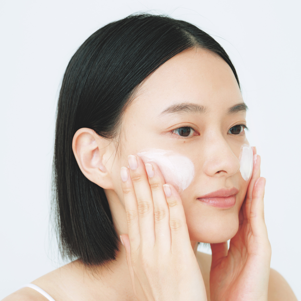 「クレンジング剤も日焼け止めと同様、指の腹をクルクル回転させながらなじませてメイクをしっかり巻きとること、そしてすすぐ前に少量の水で乳化させることが大切です。ただし洗浄剤なので、時間をかけてマッサージするのはやめましょう」(慶田先生)
