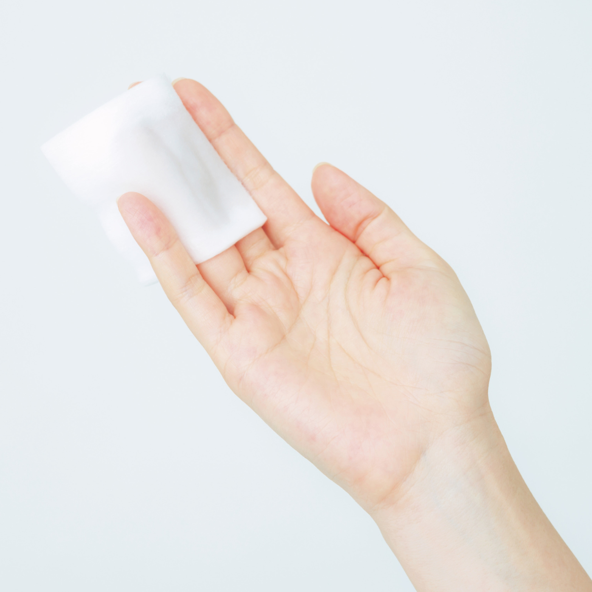 「コットンに少量しかとらず、毛穴の汚れを落とそうとしてゴシゴシこすったりすれば、摩擦になります。肌にあたるコットンの面全体が裏まで濡れるぐらいたっぷりの量をとり、優しく拭き取るようにしましょう」(慶田先生)