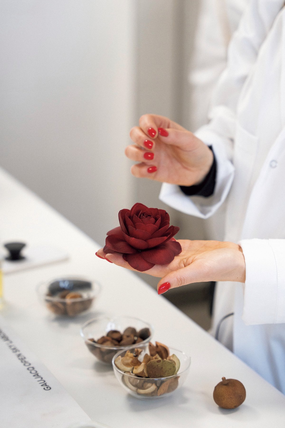 ひとつの品種からエキス、オイル、ペーストなどさまざまな形状の美容成分が抽出される。