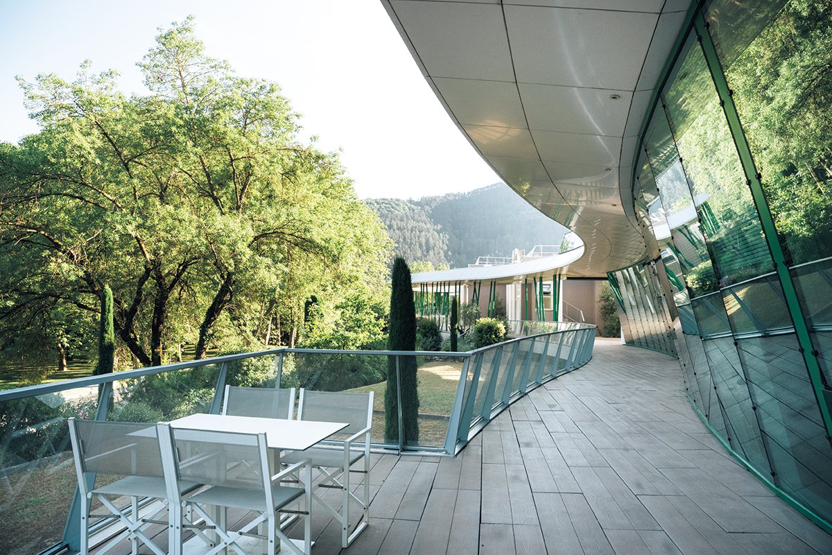 アトピー性皮膚炎や抗がん剤治療後の肌治療のために、世界中から年間約2,000を超える人が訪れる施設。3週間の滞在中に医師の診療が3回実施されるなど、きめ細やかなケアを受けられます。温泉水での入浴やシャワー、個々人に合ったオプション治療などに加えて、肌疾患をカバーするためのメディカルメイクアップ講座や運動、食事、心理学といったワークショップに参加することも可能。肌の治療はもちろん、テルマリズムセンターを離れた後も肌や心、体が心地よい状態をキープできる制度が整っているのが魅力!