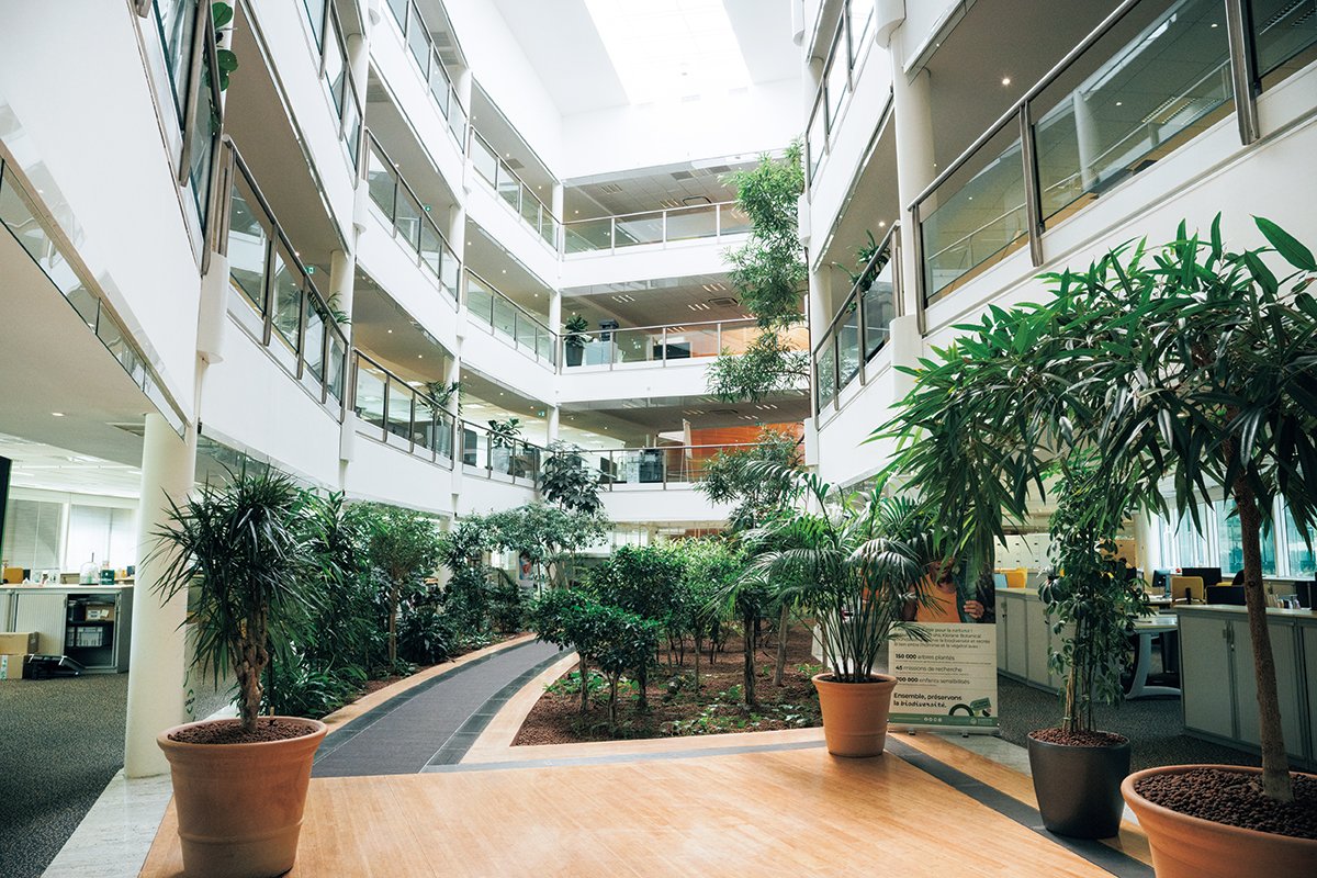 ここ本社には、デルモコスメティックブランドの多様な部門が集まり、フランスで生まれた製品を各国の薬事に沿って展開する方針を決めています。室内でも自然を楽しめるよう植物を配置したり、フリーアドレス制を導入して、社員同士がより情報共有をしやすい環境にしているそう。そして、ピエール ファーブル社の活動の根底にあるのは「ひとりをケアすることが、世界全体をより良くする」という信念。その思いから、生まれ故郷の街や地方に本社と生産拠点を置き、地域活性化の推進や、徹底された市場調査を経て見つけたニーズの下、革新的なアイテムを作り続けています。