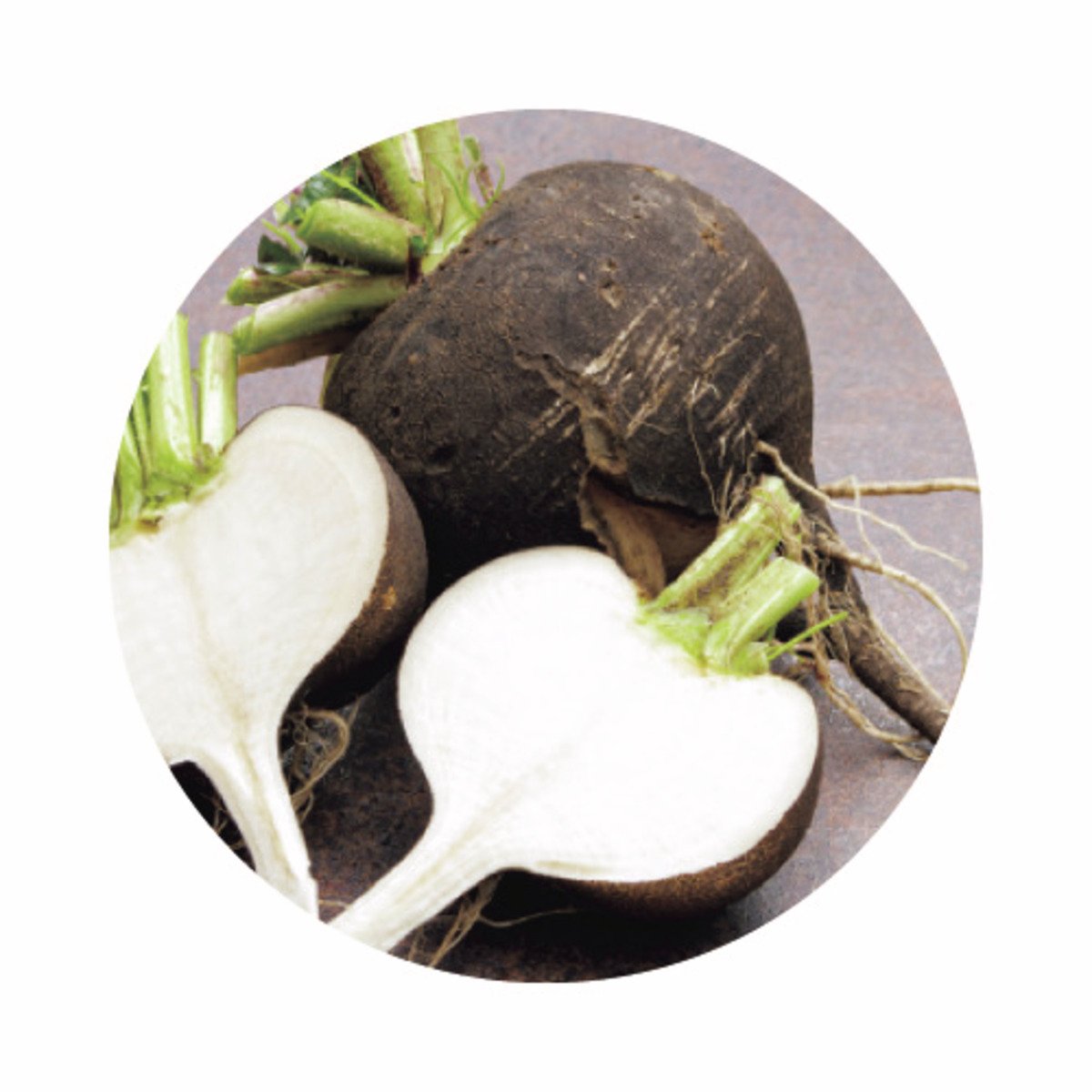 「黒」にまつわる植物、黒大根エキスから抽出したPDRNを配合。角質層への浸透性が高い低分子PDRN。