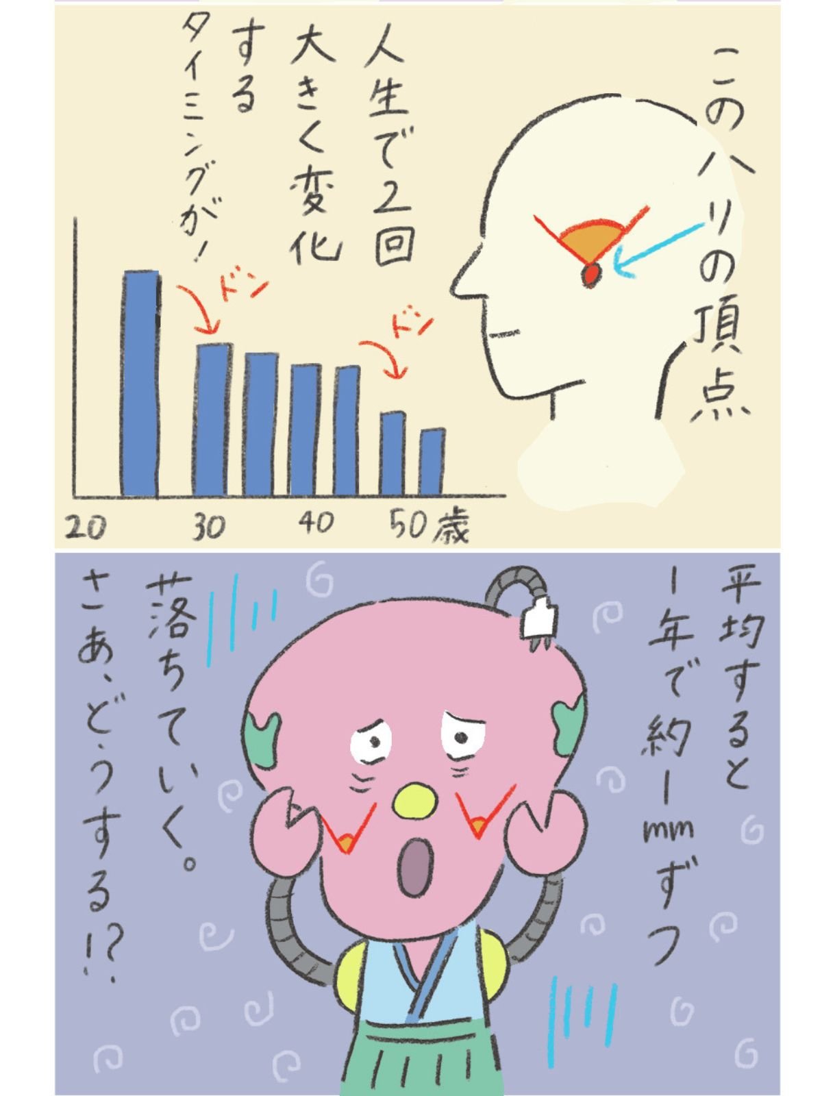 「年に約1mmずつ落ちる」とわかりやすい数字が導き出せるのも、新しい解析システムによってハリの頂点を定義できたからこそ。20代から30代にかけては大きく変化しがちなタイミング。