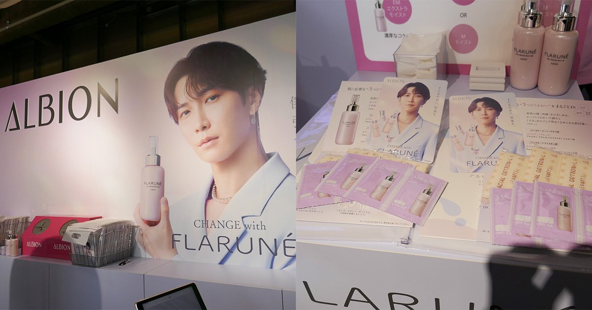 ブランドアンバサダーの渡辺翔太さんの美肌が印象的なアルビオンのスキンケアシリーズ“フラルネ”。お試しはもちろん、肌状態の測定もでき、コットンまで入ったスペシャルなサンプルプレゼントも!