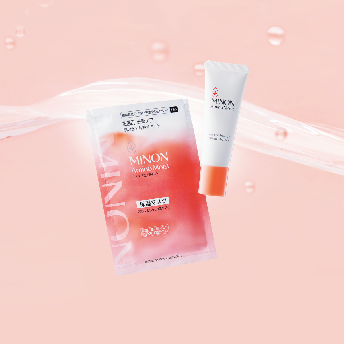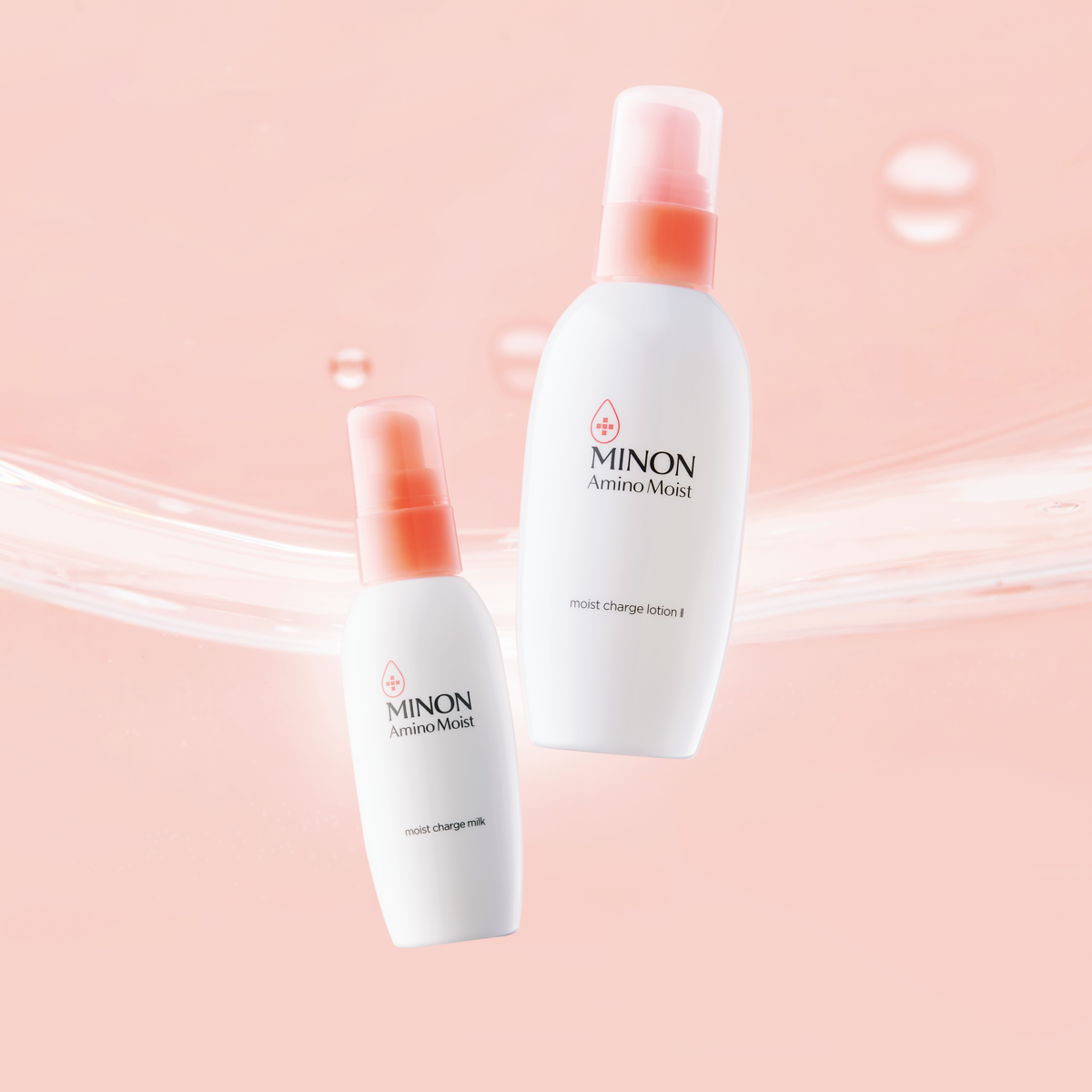 そんな皆さんにお守りコスメとしてぜひ常備してほしいのが、進化した「ミノン アミノモイスト」の敏感肌・乾燥ケアラインです。新たに「貯水肌発想」で、敏感肌を考え抜いた独自のアミノ酸配合処方を採用。潤いを保って肌のバリア機能をサポートする「9種の保潤アミノ酸・GL※4」と、柔らかで透明感のある肌をサポートする「柔肌クリア成分※5」を新配合。さらに、保湿ケアにとことんこだわった独自処方で、羨望の「透明美肌」へと導きます。