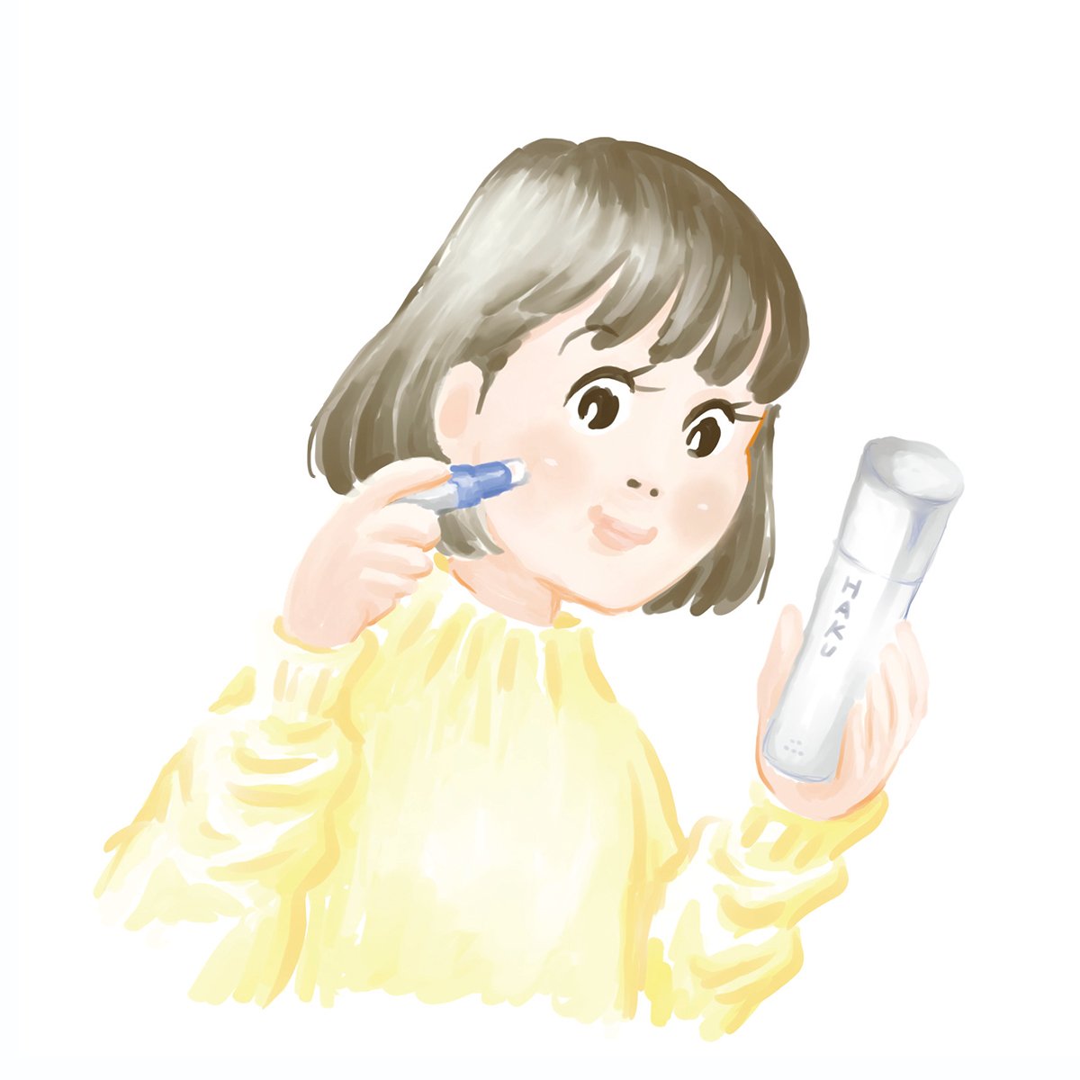 - 美白スティックを シミ部位に。 気がついたら手にとり 何度も塗る。