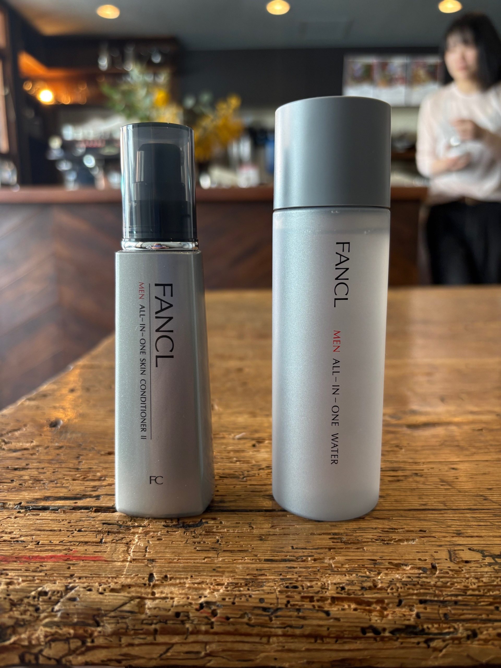 今回紹介するのは、ファンケルの男性用スキンケア製品である「ファンケルメン オールインワンウォーター」と「ファンケルメン オールインワン スキンケアコンディショナー」です。この2製品ですが、どちらもよかったです。どちらもモノトーンのデザインで、香りもついていません。香りは好みがありますから、不慣れな初心者の方にも手に取りやすいシンプルさがいいと感じました。「オールインワンウォーター」は化粧水として使うのが効果的でしょうか。肌荒れのケアだけではなく、紫外線で痛んだ肌にも効くのが魅力です。塗ってみると、かなりしっとりとした肌の感触が得られて心地よいですし、ひげ剃り後の肌になじみました。「オールインワン スキンケアコンディショナー」はジェル状の美容液で、保湿後のエイジングケアに適しています。かなりうるおいが保たれるので、乾燥肌の方にいいように思いました。翌朝、肌にハリが出たような感覚もあり、美容液としての機能もよさそうです。実は傷つきやすい男性の肌、こちらの製品で優しくいたわってあげてはいかがでしょうか。