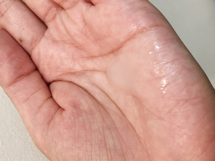 とろりとした滑らかなジェル状のテスクチャー。少量でも顔全体を充分に塗れるくらいのびがよく、肌にすーっと馴染んでベタつかないので、心地よくスキンケアできます。肌がたっぷりと潤い、ふっくらするのを実感できるほど!
