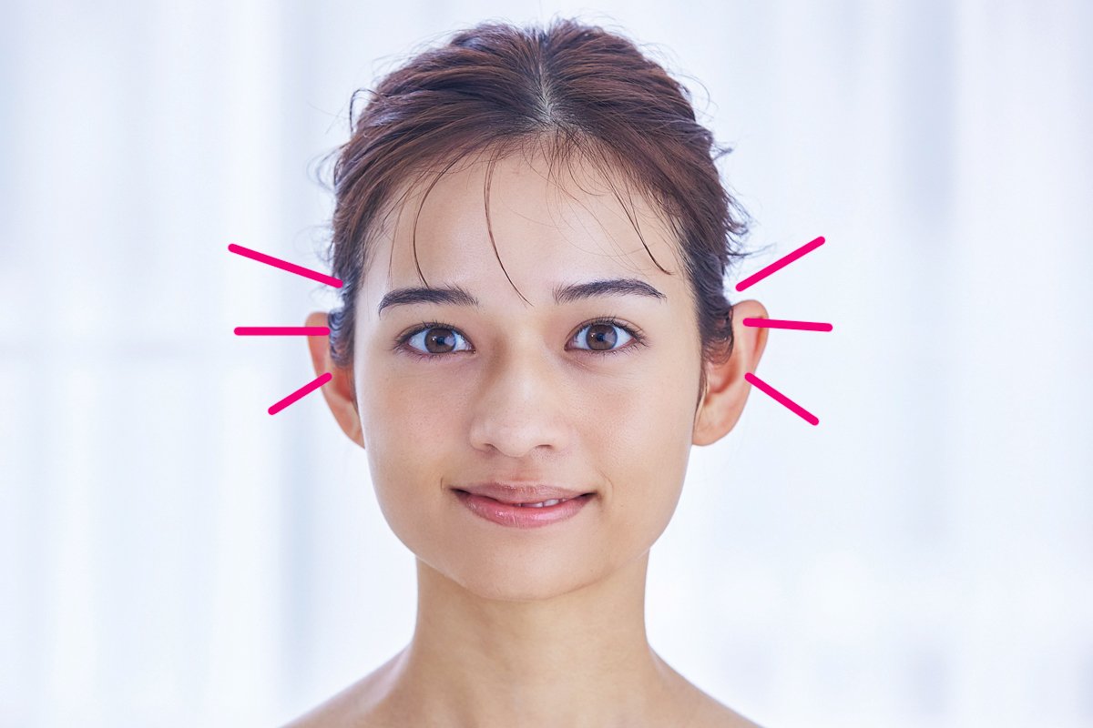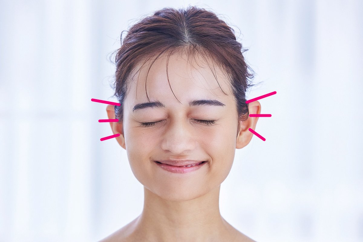 目元用美容液を塗ったら、なじみ切るまでの時間を利用して目元を動かすエクササイズを。筋肉を動かして循環が高まることで、コスメの効きもさらにアップ! 3秒かけてゆっくり閉じ→パッと開く、を5回繰り返す。