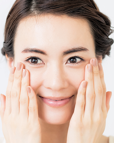 両手をこすり合わせてオイルを広げ、まずは頬を包み込むようになじませる。残ったものを額やあごに。鼻周りはつけなくてOK。