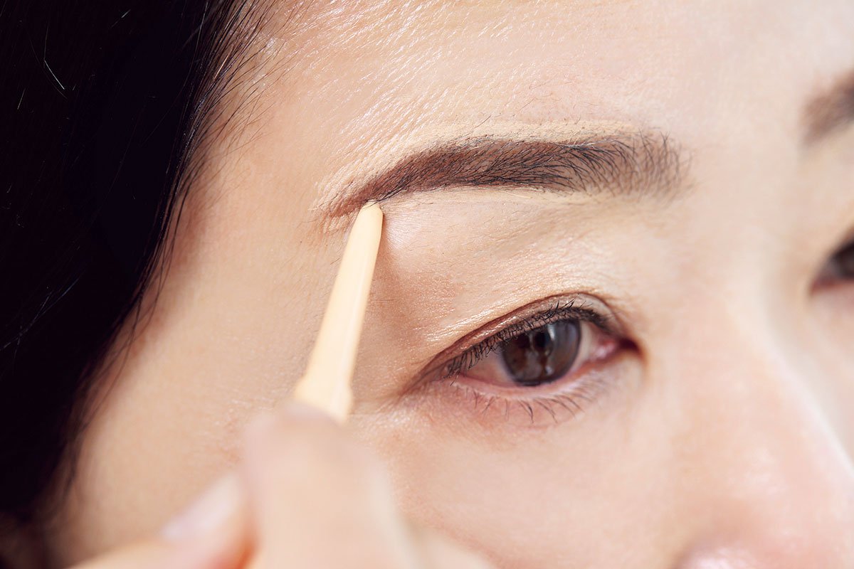 “コンシーラーで丸囲みしてぼかすと、眉にメリハリが出て、イキイキ顔に”
