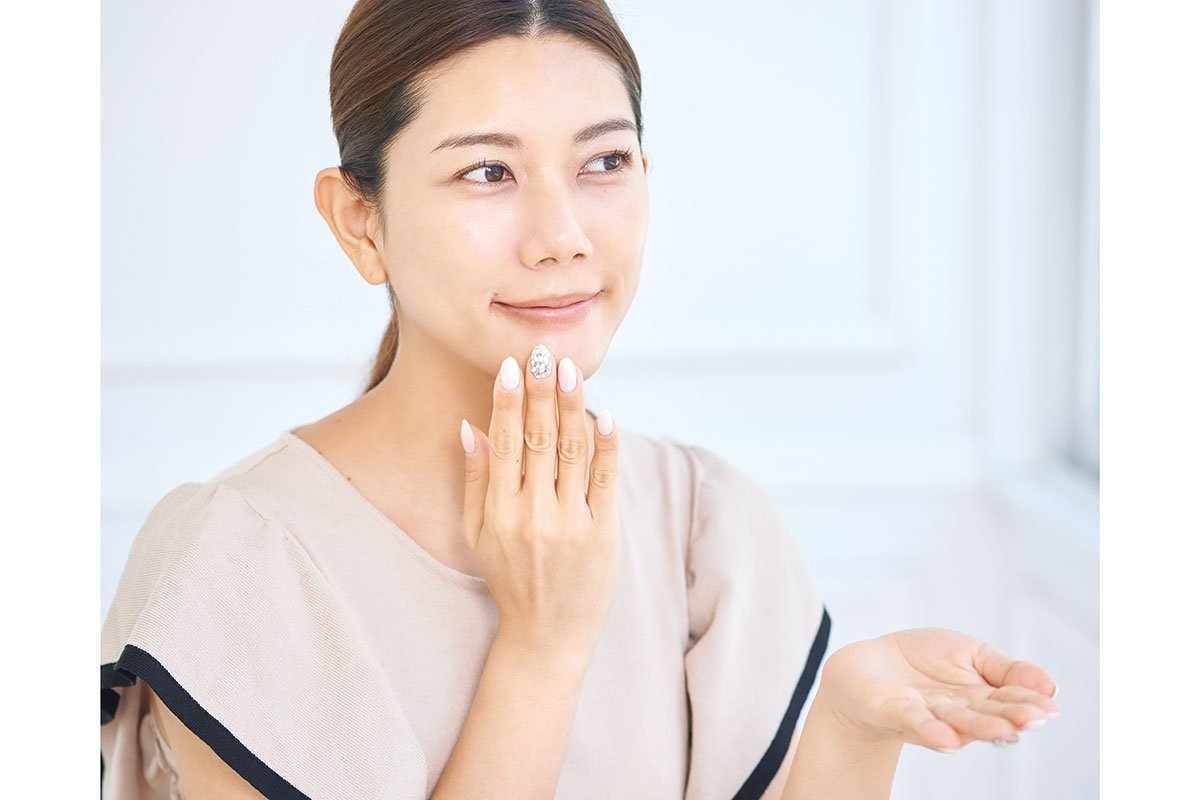 「洗顔後、化粧水で整えた肌にビタミンC美容液を顔の下半分にON。ビタミンCは肌に優しく、悩みにマルチに働きかけてくれます!」