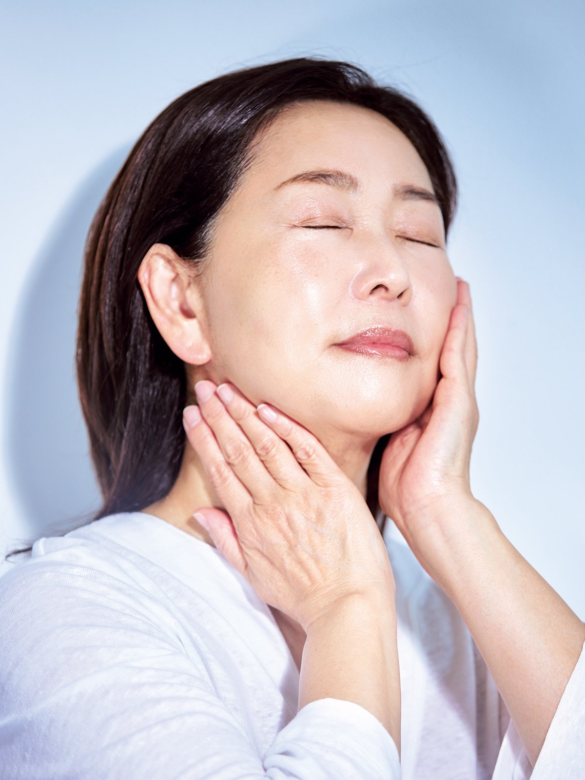 「皮脂を抑えてキメの整った肌に。必ず首までのばしています」