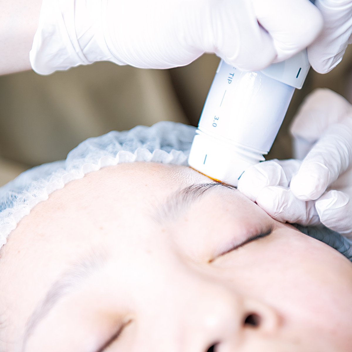 「超音波系の『ソフウェーブ』は、施術直後から引き締まりを実感しやすいのが特徴です。シワ、小ジワ、眉・あご下・首のリフトに効果的であると、日本の厚生省に当たるアメリカFDAの認証を受けています。さらに最近、承認はないものの、ニキビ痕や赤みへの効果に対する最新マシンで施術直後から実感できる引き締まり感実績も。理想は半年に一度、メンテナンス感覚で続けてほしいです」(山田先生)