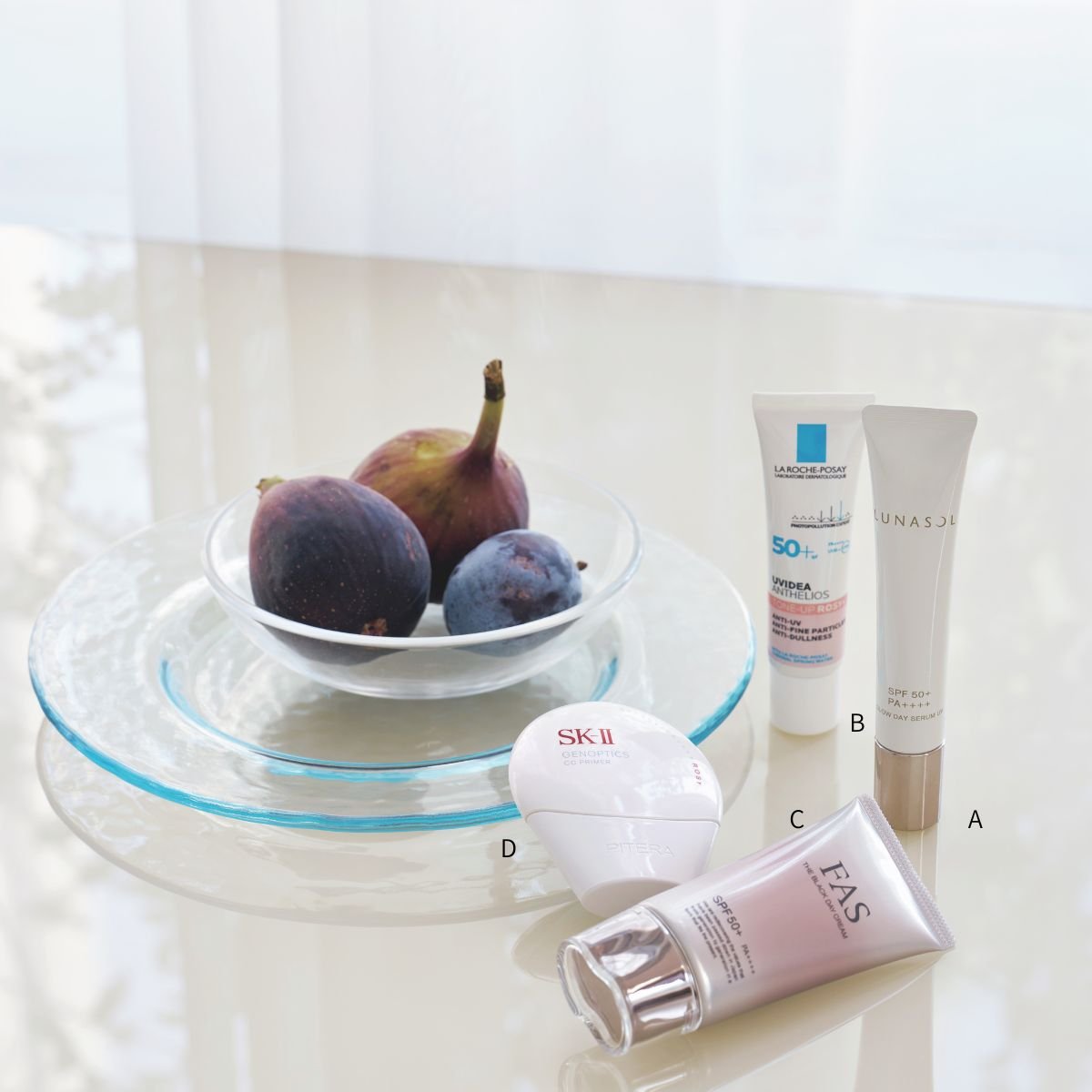 友利  元々脂性肌なので、まずは皮脂でくずれないことを優先します。いくつも塗り重ねるとくずれやすくなってしまうので、日焼け止め効果と下地効果が1本で得られるタイプを選ぶことが多いです。いつも使っているのは『ラ ロッシュ ポゼ』。秋からだったら、保湿力の高い『ルナソル』や『FAS』、みずみずしい『ポーラホワイトショット』もいいですね。