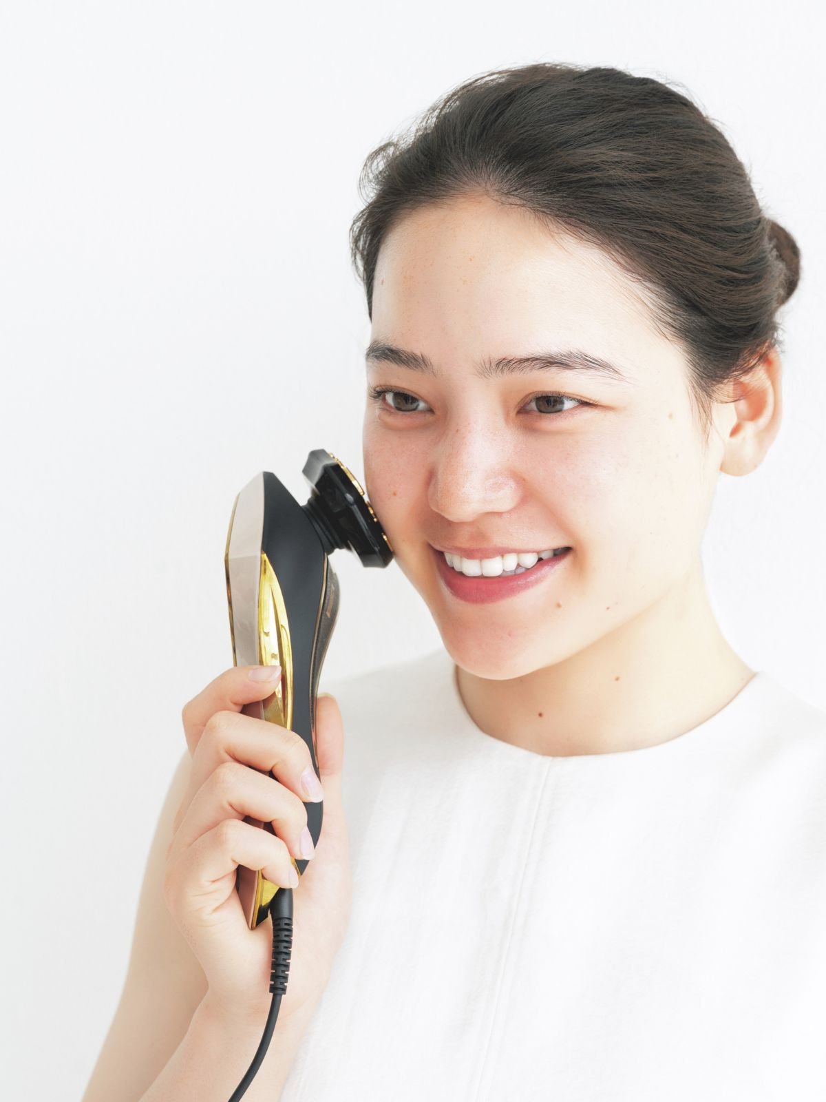 独自の電気パルスを効率良く出力し、タッピングやハンドプレスのような心地よい体感がかなうオールインワン美顔器。あらゆる肌悩みを1台でケアできる(高橋さん私物)。