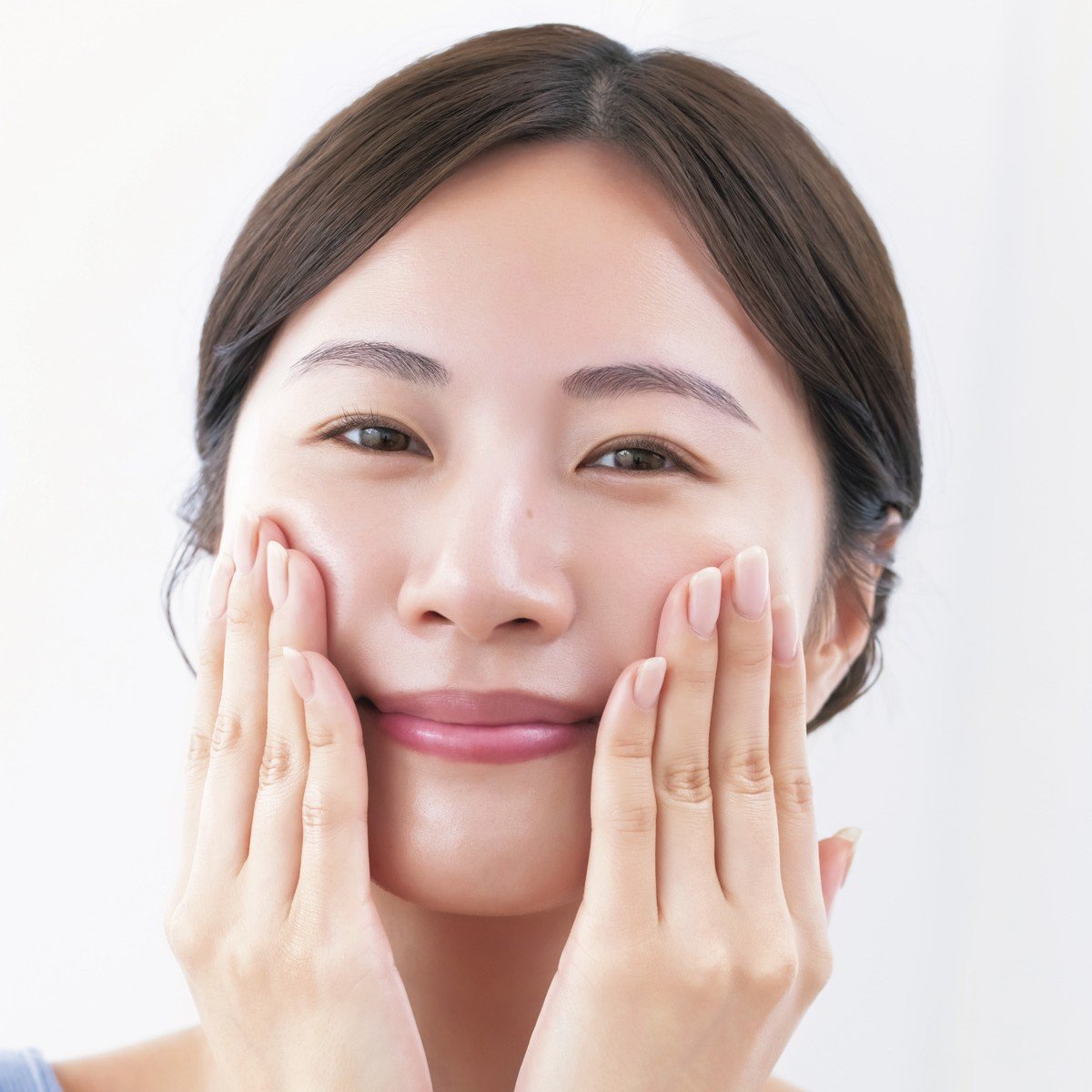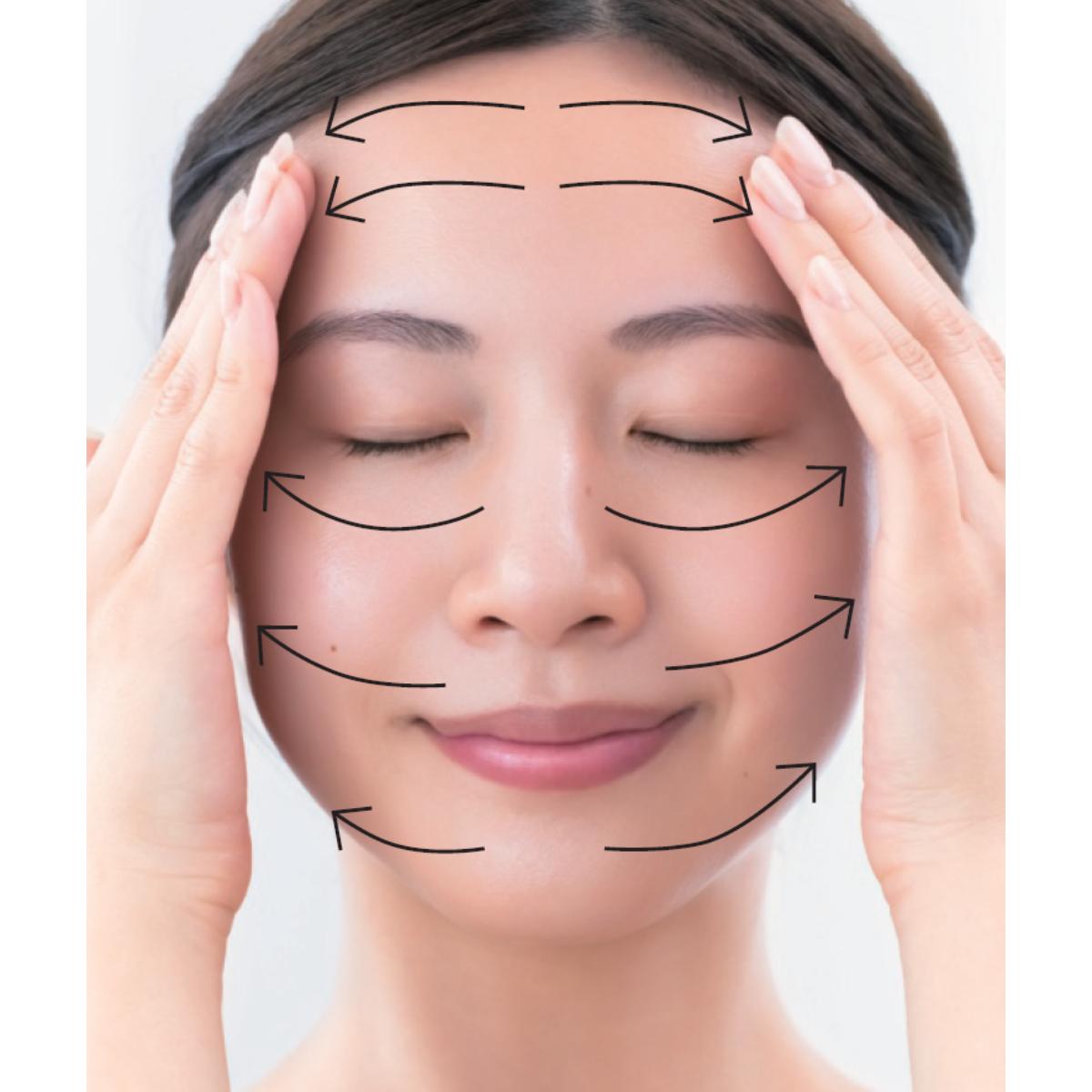 美容液を手にとり、顔の中心から外側へ向かって、指の腹でそーっとなでるようにのび広げる。顔全体にくまなくしっかりのせて。