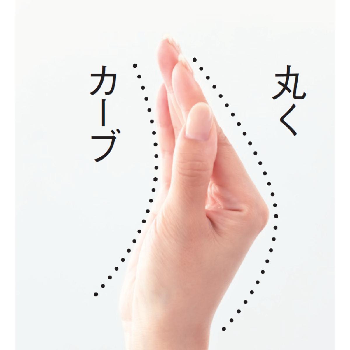 手が反り返っていると骨に当たって摩擦となる可能性が。ボールを持っているようなカーブをつけると、最小限の力でケアできる。