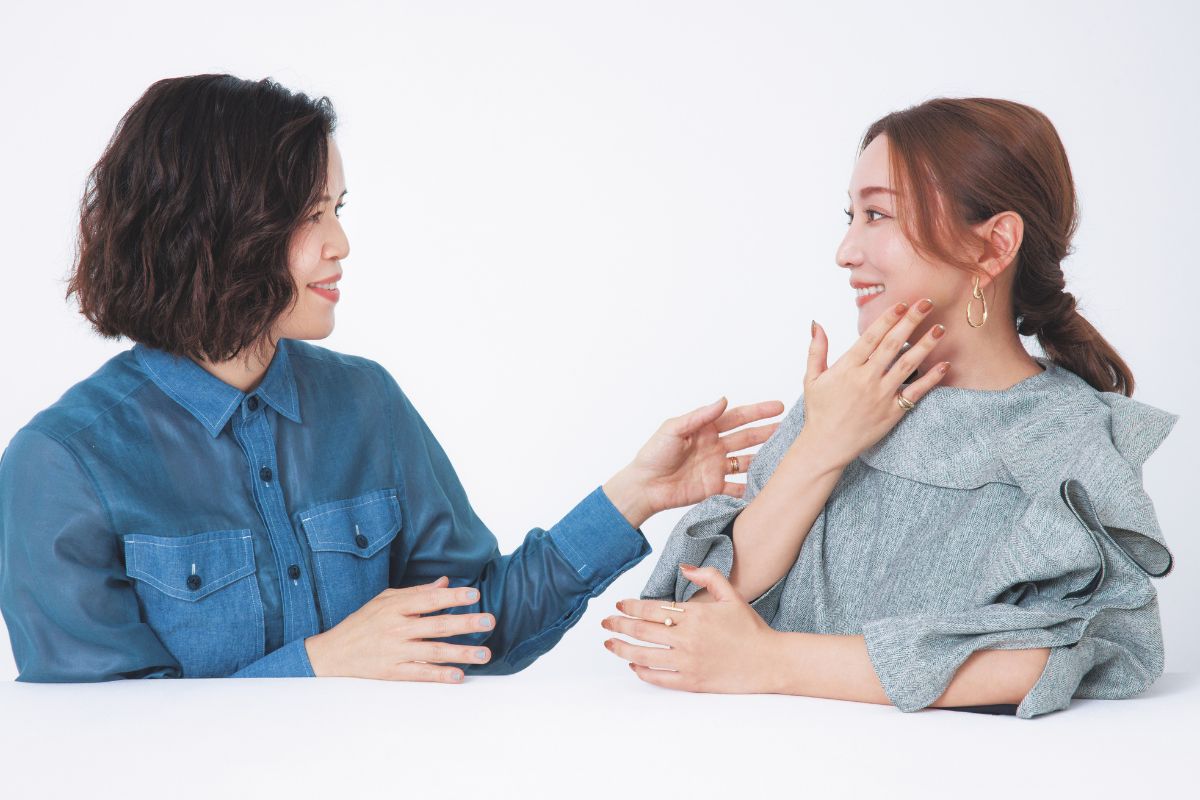 ブラウス¥55,000(TSI〈ADORE〉) “ヘンカ”のピアス¥3,960、“masae”のリング¥17,600(ロードス)