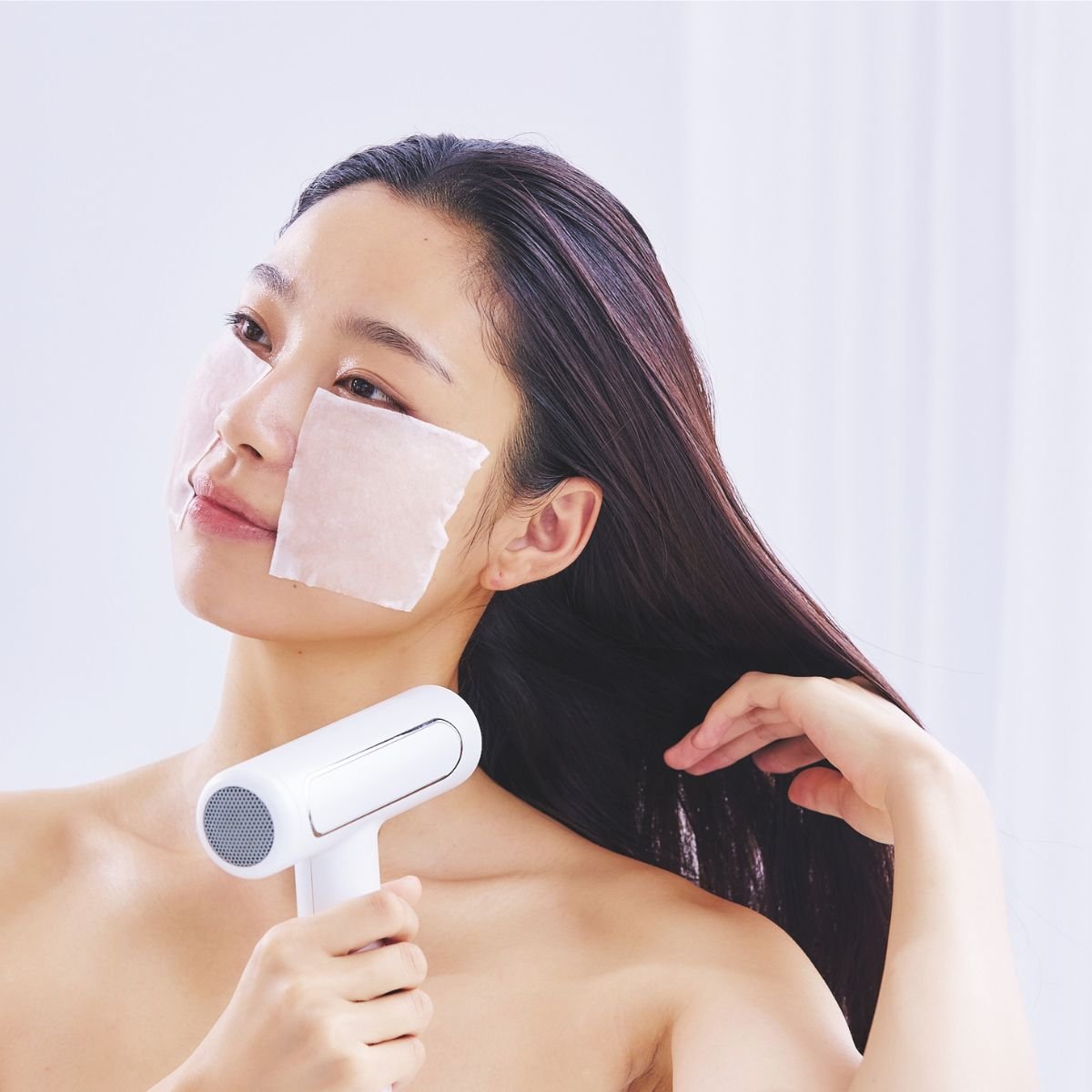 髪を乾かし“ながら”でマスクケアをする場合は、全顔用よりも、生え際にかからないパッドタイプの方が快適。大容量アイテムで、毎日の習慣に。
