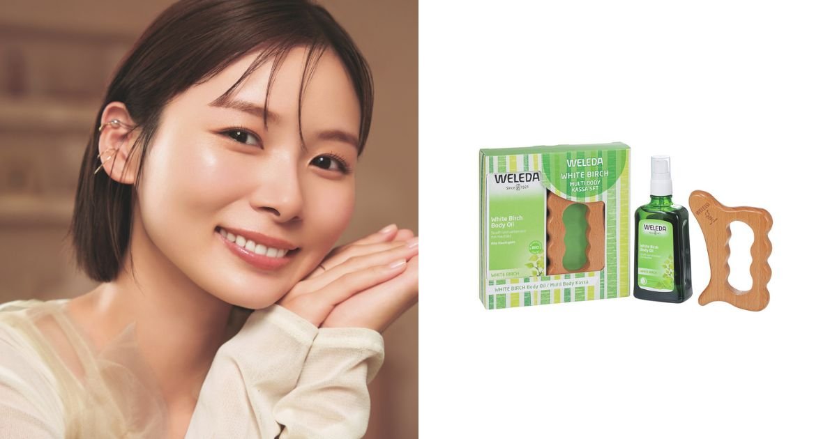 「アイドル時代より運動量が減ったことで、肌のくすみが気になるように。クリニックでおすすめされたAで朝晩洗顔を始めたら、血の巡りが良くなったのか肌の透明感とハリが上がった気がします! 顔だけでなく、全身の巡りを整える大切さも実感中。ちょっとしたこりやむくみを無視してため込むと、ケアがむしろ大変に。最近は寝る前に、「あら、今日はここがこっていますね〜(笑)」と自分の体に声をかけるようにBで脚や鎖骨、手で頭や咬筋のマッサージしています」