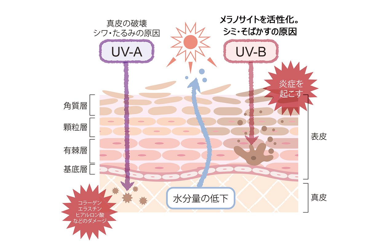 紫外線ダメージで肌のバリア機能が低下すると、乾燥からシミ、シワ、緩みまで、あらゆる肌トラブルのもとに。肌のバリア機能を整えることは、肌の健康を保つ絶対条件です!