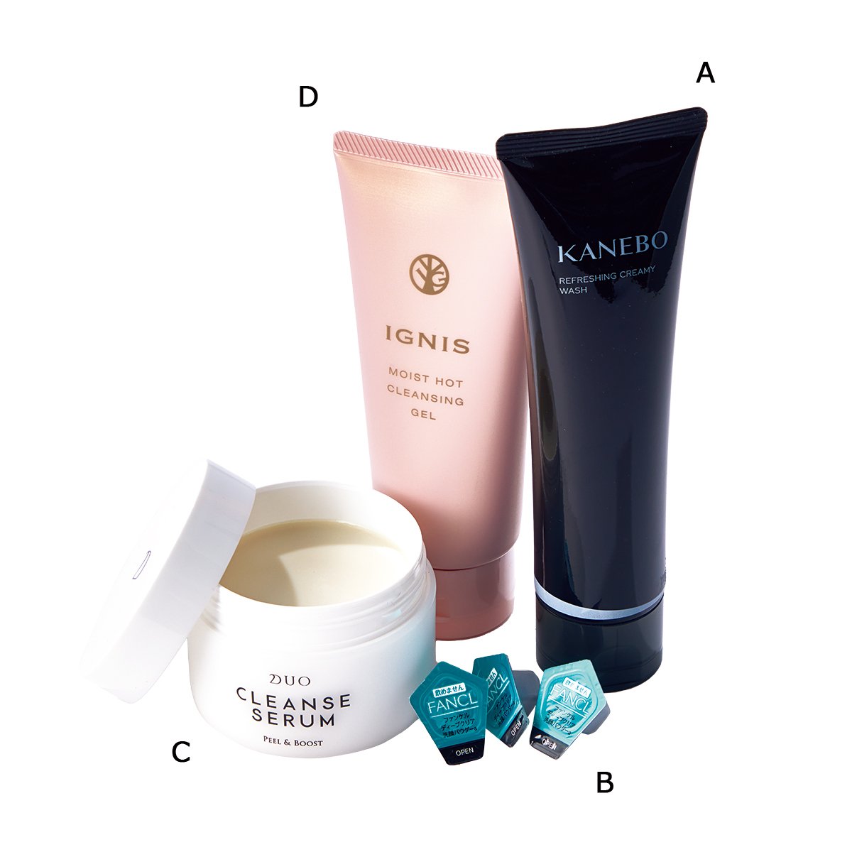 ピーリング系、温感系、酵素系などから、好みのものをチョイス。Tゾーンなど皮脂分泌の多い部位は優しくマッサージを。