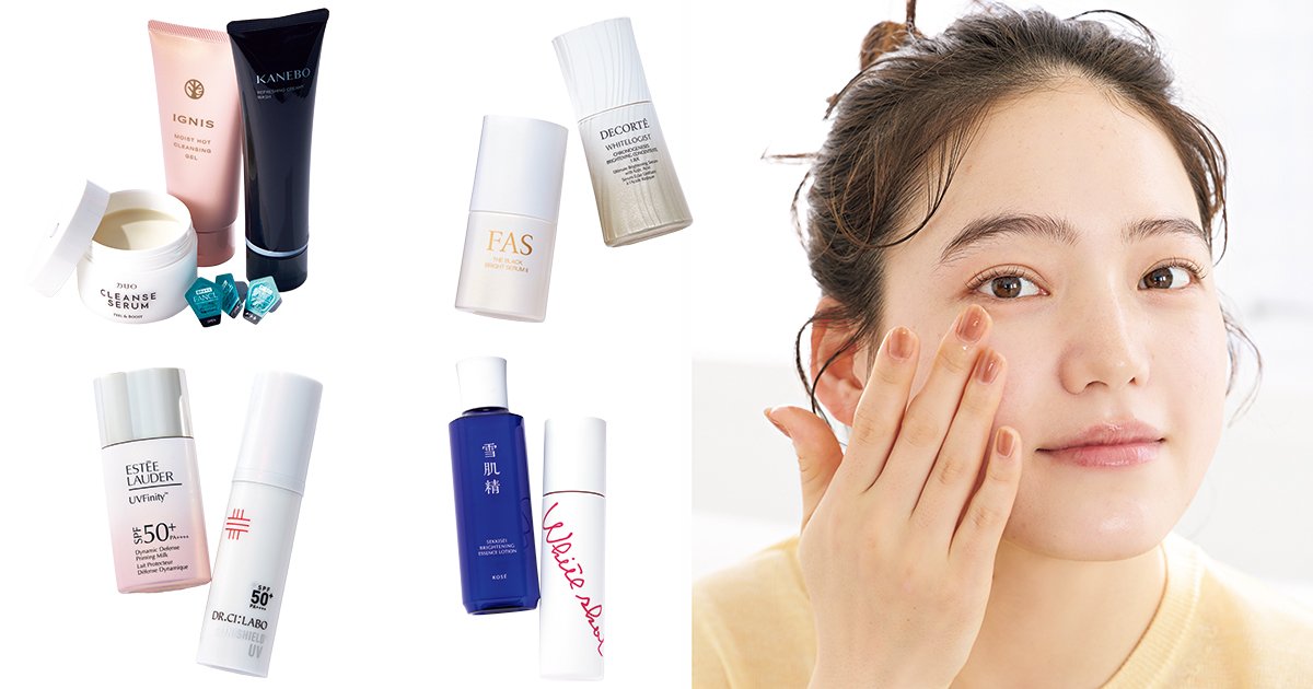 「ビタミンCやトラネキサム酸などの美白有効成 分配合のローションやセラムを、肌の奥まで届ける気持ちでたっぷり入れ込んで。美白のサプリメントを今から飲み始めたり、週2回程度、美白シートマスクで美白成分を集中チャージするのもおすすめです」(友利先生)