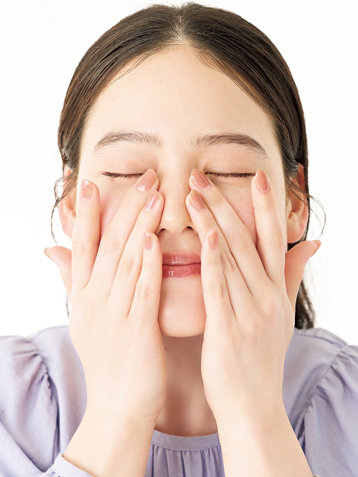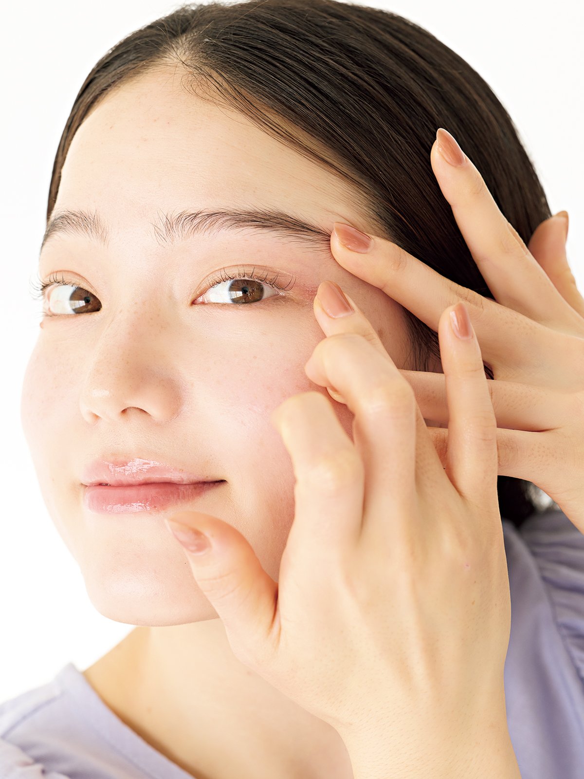 Serum:シワ改善美容液をシワ部分に丁寧になじませる