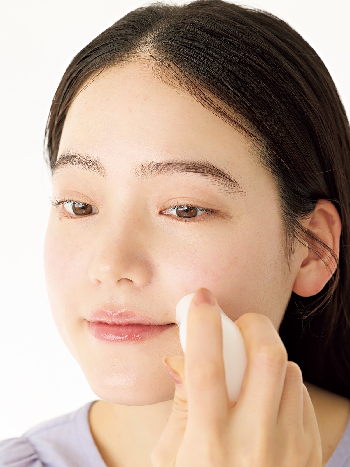 乾燥は炎症やバリア機能低下のもと。「メイクの上からでも使える保湿バームが◎。乾燥しがちな頬や目周り、口角などを潤いの膜で守りましょう。ビタミンCなどの抗炎症成分入りならなお良し!」
