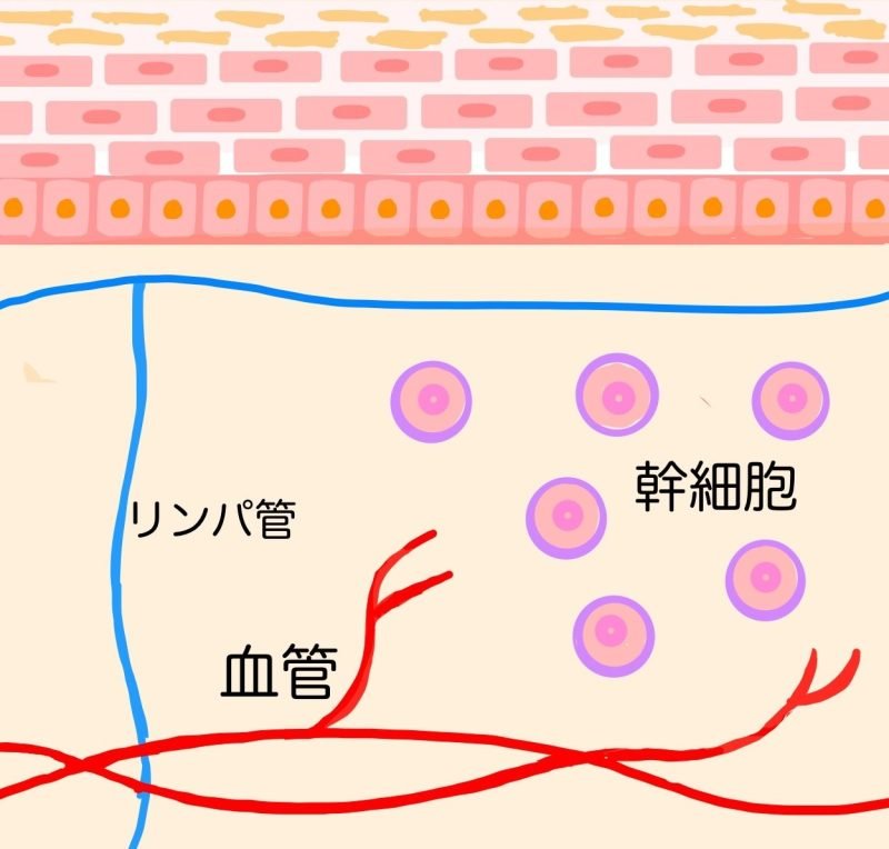 また真皮でも、血管(毛細血管)が安定して存在し、血流が良いことで、真皮幹細胞の再生や修復力が高まることがわかっています。肌のハリを支えるコラーゲンの再生にも血流が大事です」