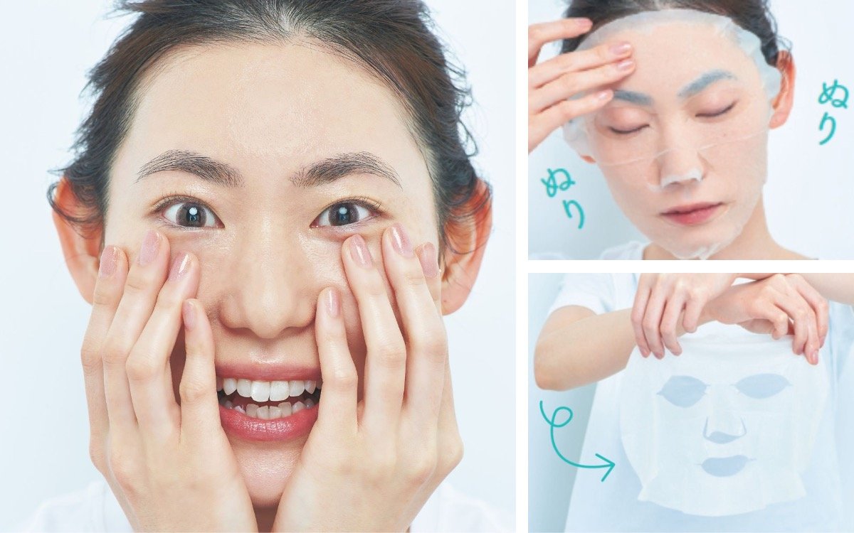 シートマスクを取り、くるっとひっくり返して乳液部分を肌側にして再び3分つける。外したらクリームで肌を整える。