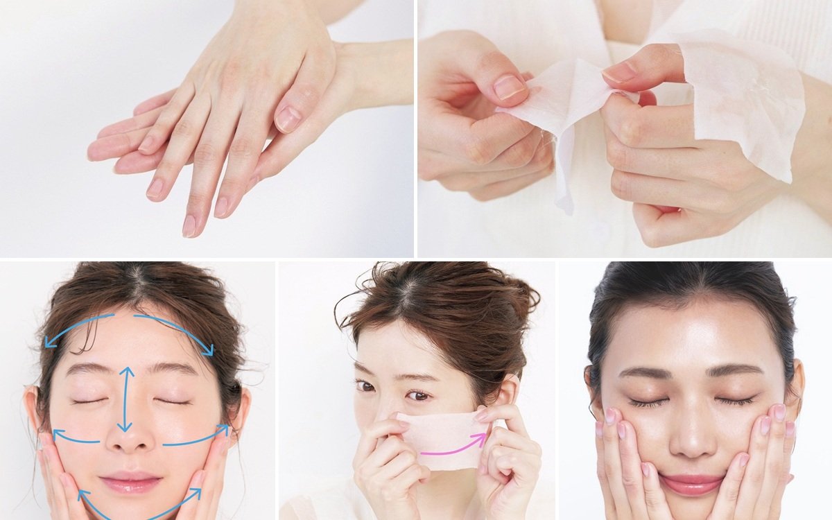 多めのローションで滑りを良くして、手のひら全体で顔の中心から外側に向かってさするようになじませます。手のひらの熱でじっくりと肌奥にまで浸透させるイメージで。