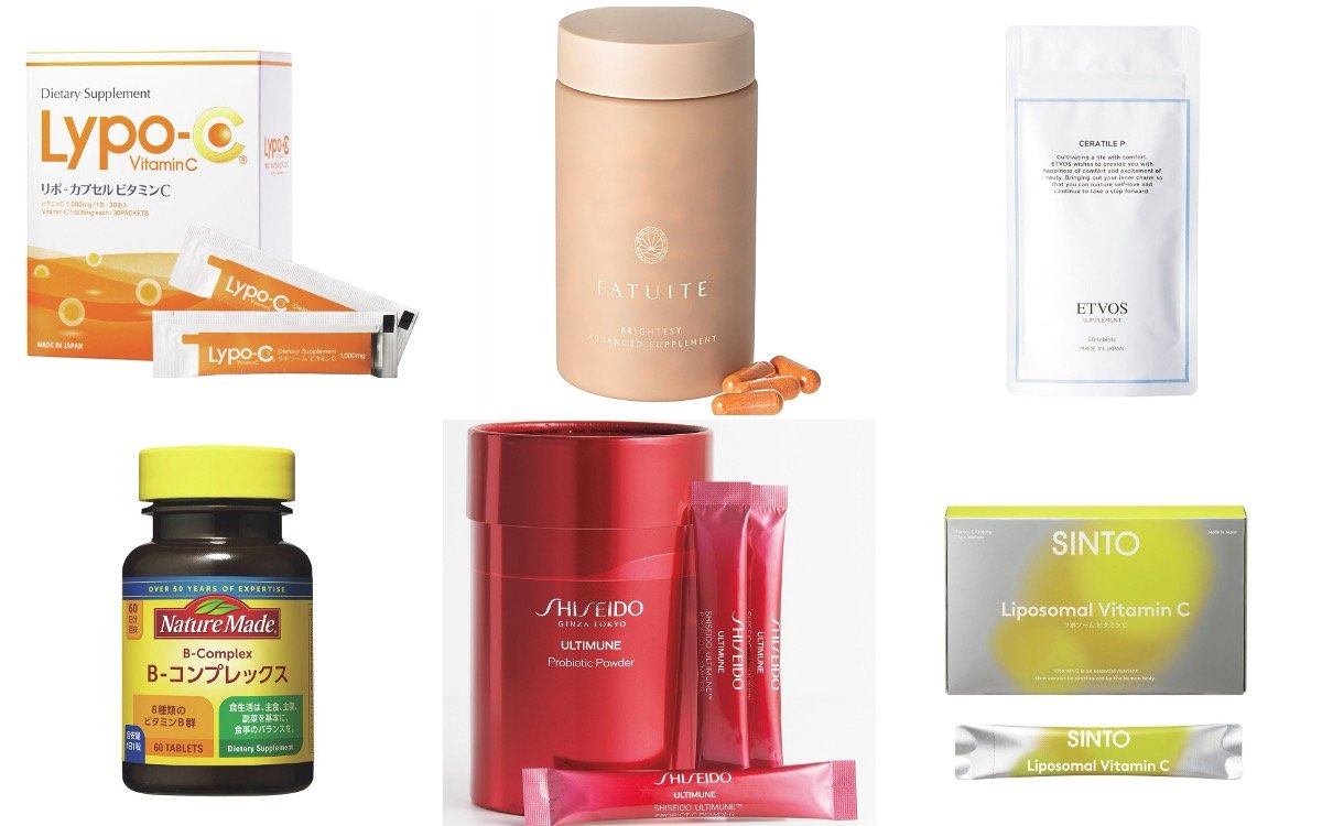 「ビタミンCとビタミンB群はそれぞれ美肌効果が高く、同時にとることで相乗効果も期待できます」(慶田先生)。ビタミンC+そのほかのビタミンを同時配合しているサプリメントも多く、美白、潤い、ハリ感など多角的な効果を期待できます。