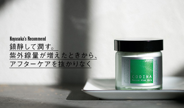 「紫外線を浴びると、肌は乾燥して固くなりがち。今の時期からアフターケアをきちんとしておけば、くすみやゴワつきとは無縁に。これは、鎮静作用のあるアロエベラ液汁と、保湿効果の高いシアバターを配合。ホイップクリームのようにふわふわとした質感で、肌にとろけるようになじんでベタつかないから、クリームなのにこの時期でも使いやすい!」