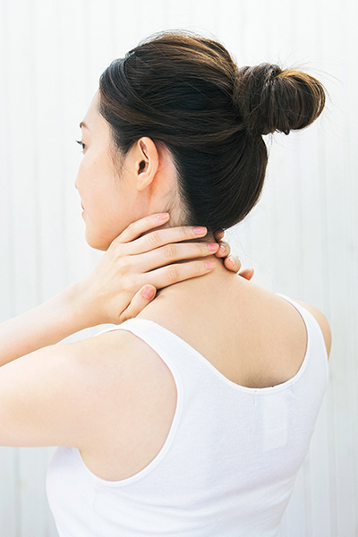 手のひら全体を使って、まんべんなくコスメをなじませる。首筋やうなじなど、日焼けダメージを受けやすい場所をくまなく保湿。
