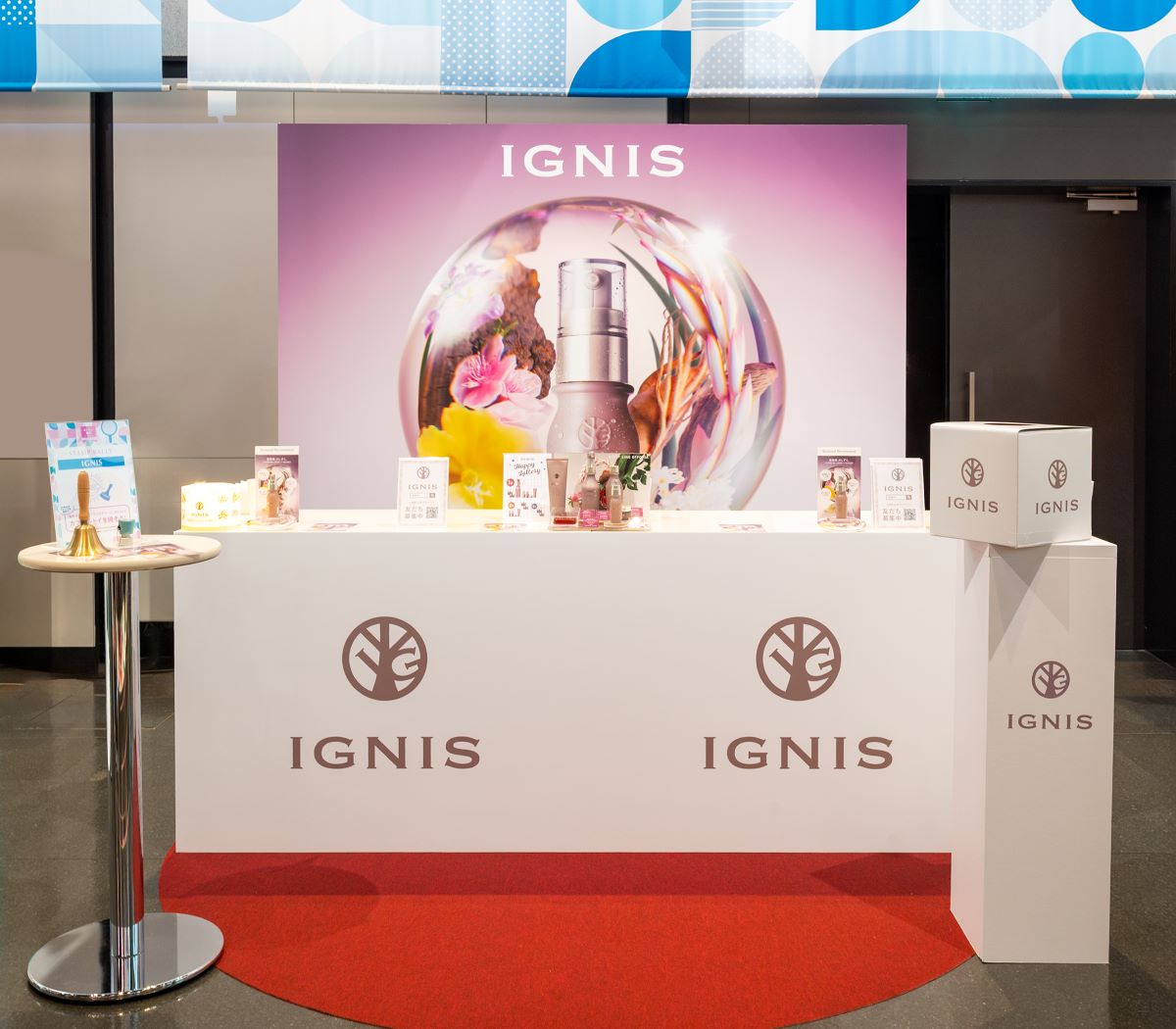 ブランドを想起させるハーバルフレッシュが香るイグニスのブースでは、ハリと潤いに満ちたツヤ肌へ導く新作の美容液「モイスチュアライジング エフフォーリア エッセンス」のタッチアップに参加。さらに公式LINEの友達登録をすることで、美容液現品が当たる可能性があるくじ引きにもチャレンジ!会場では当選を知らせる鐘の音が響き渡っていました。