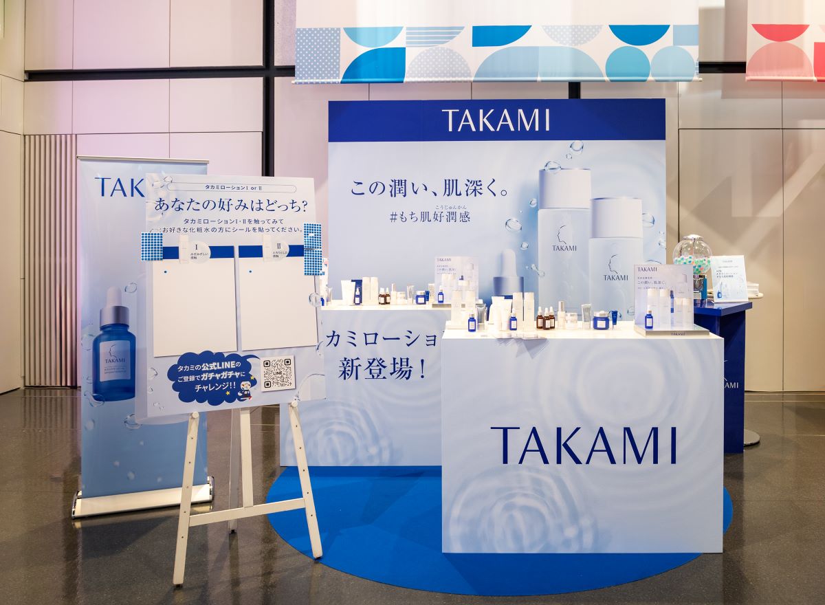TAKAMIのブースでは、名品「タカミスキンピール」をはじめ、注目の新製品「タカミローション」のタッチ&トライを実施。お手元でテクスチャーの違う2種類のローションをお試しいただき、さらに自宅でのスキンケアでも「ちょうどいい潤い」を体感できるように、サンプルのプレゼントも!公式LINEを登録した人には特別なギフトが手に入る、カプセルトイを回すチャンスもありました。