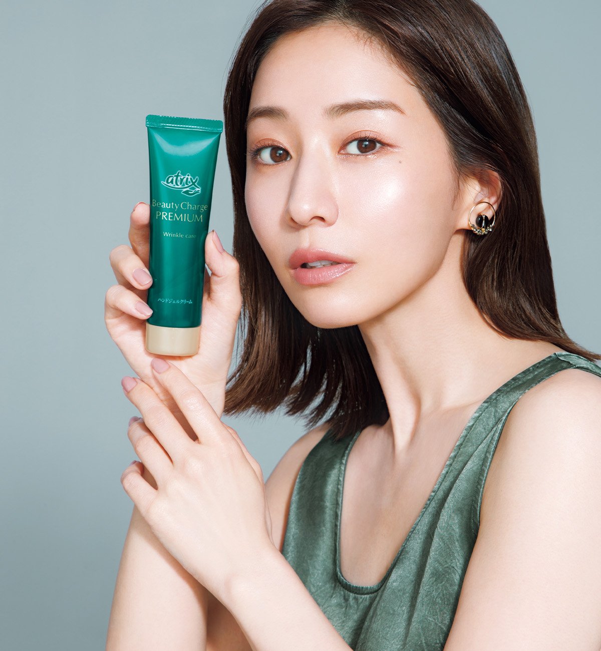 普段から“アトリックス ビューティーチャージ”のハンドケアアイテムを愛用する田中さんは、新プレミアムラインの高機能美容液ハンドクリームたちが早くもお気に入り!