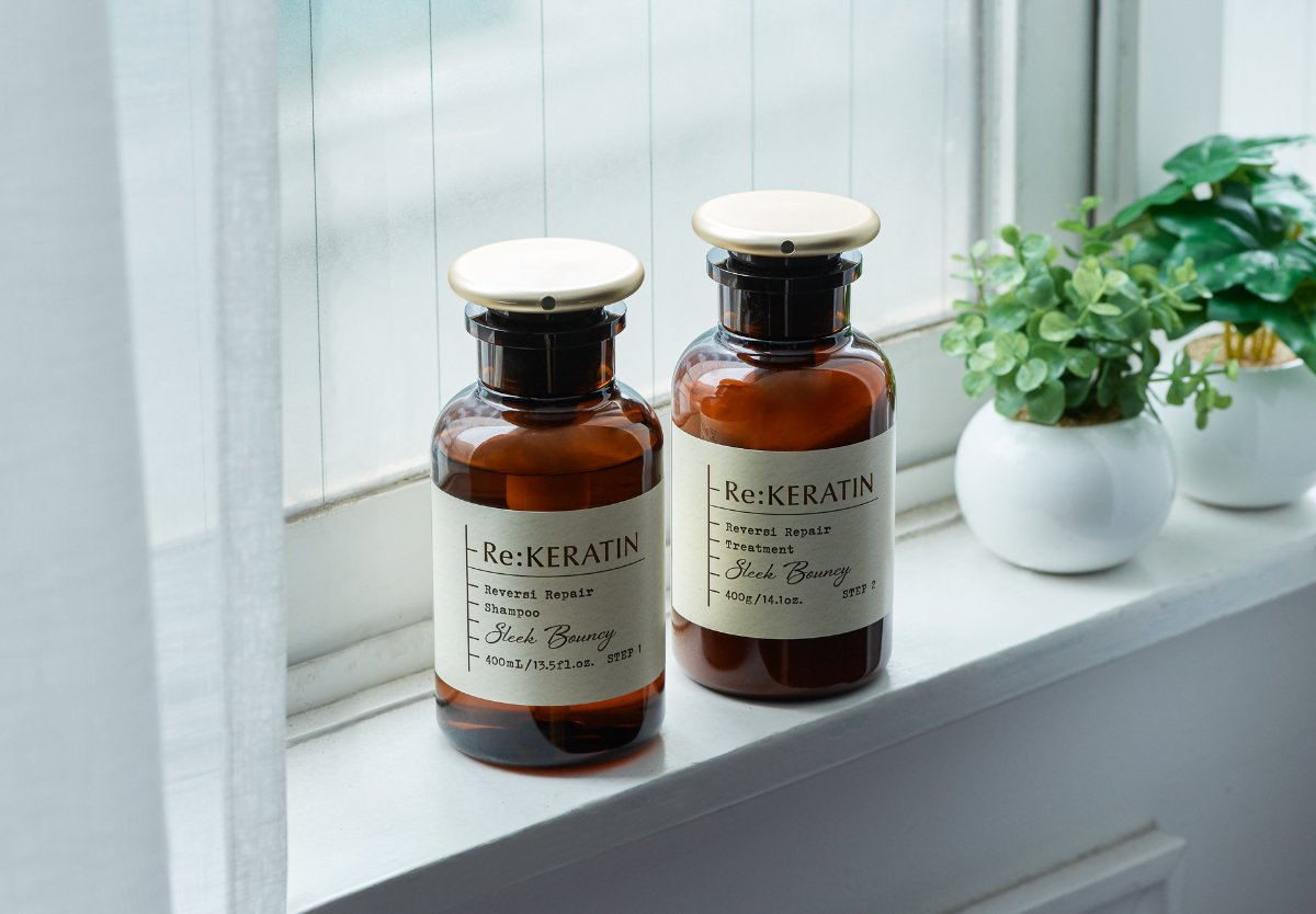 ヴィークレア 左/Re:KERATIN(リ ケラチン) リバーシ リペア シャンプー 400ml ¥1,980 右/Re:KERATIN(リ ケラチン) リバーシ リペア ヘアトリートメント 400g ¥1,980