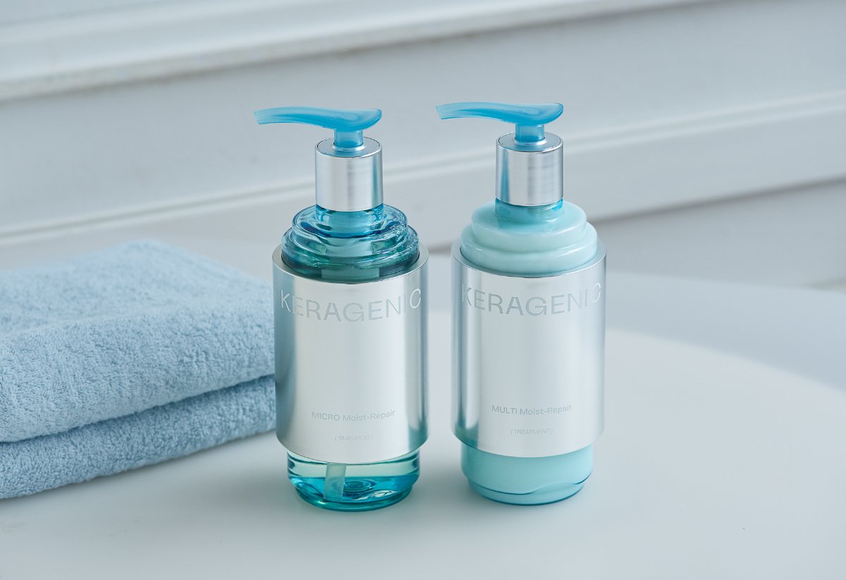 bridge 左/KERAGENIC(ケラジェニック) マイクロ モイストリペア シャンプー 380ml ¥1,980 右/KERAGENIC(ケラジェニック) マルチ モイストリペア ヘアトリートメント 380g ¥1,980