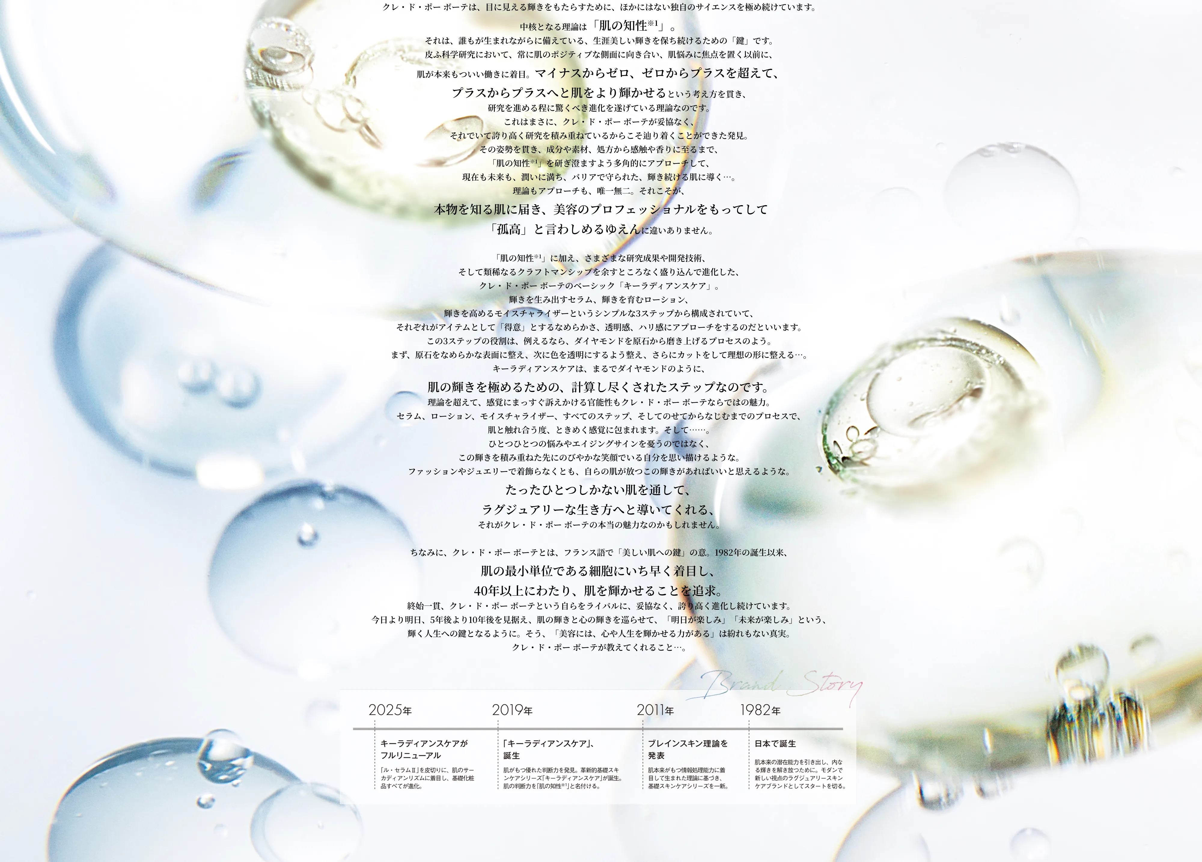 メインカット)右から/夜の肌リズムに着目し、濃密な潤いでハリ・弾力を生み出す力をサポートする夜用クリーム。クレ・ド・ポー ボーテ クレームアンタンシヴ R(ニュイ) 50g ¥19,250、昼の肌リズムに着目し、紫外線や乾燥などの環境ダメージから肌を守る日中用クリーム。同 クレームプロテクトゥリス R(ジュール) SPF25・PA+++ 50g ¥16,500、みずみずしく軽やかなテクスチャーで夜の肌をふっくらなめらかに整える夜用乳液。同 エマルションアンタンシヴ(ニュイ) 125ml ¥17,600、フレッシュで軽やかなテクスチャーで日中の肌を守りながらふっくら潤す日中用乳液。同 エマルションプロテクトゥリス(ジュール) SPF25・PA+++ 125ml ¥15,400、お手入れの最初に使うファーストステップ美容液。独自成分「ラディアントリリーコンセントレート※2」を配合。肌の潤いのバリアを整え、さまざまな環境ダメージ要因から肌を守る。クレ・ド・ポー ボーテ ル・セラム II 50ml ¥30,800、独自の発酵美容成分「プレシャス米麹発酵エキス※4」を角層深部に閉じ込める独自の浸透技術を採用。濃密な潤いで肌を満たす、モイストタイプのローション。同 ローションエサンシエルA 170ml ¥14,300、高い機能性はそのままに、よりさっぱりとしたみずみずしい使用感のローション。明るくクリアな透明感あふれる肌に。同 ローションエサンシエルC 170ml ¥14,300